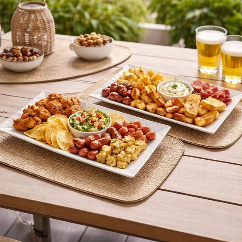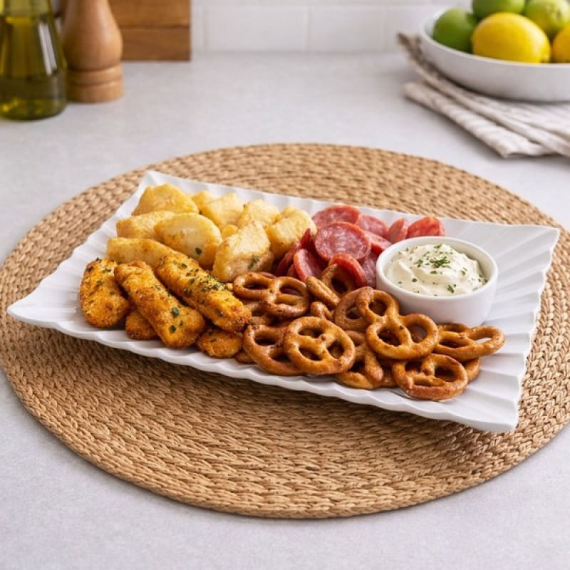 Travessas Petisqueiras Retangular Cerâmica 29x16cm Kit 2pçs - Deixe sua mesa mais bonita e organizada com esta travessa petisqueira retangular em cerâmica. Ideal para servir petiscos, entradas, molhos, frios, doces e pequenas porções com charme e sofisticação Destaques do Produto: Ideal para petiscos, aperitivos e porções Cerâmica resistente e durável Material: Cerâmica Formato: Retangular Tamanho: Altura 4cm x Largura 16cm x Comprimento 29cm Uso: Servir petiscos, molhos, frios, doces e acompanhamentos Conteúdo da embalagem: 2x Travessa Retangular Em Cerâmica De 29x16cm Características Gerais do Produto: • Material: Cerâmica • Modelo: Travessa Retangular • Cor: Branco • Dimensões aproximadas: Altura 4cm x Largura 16cm x Comprimento 29cm Garantia: • Garantia contra avarias no transporte
