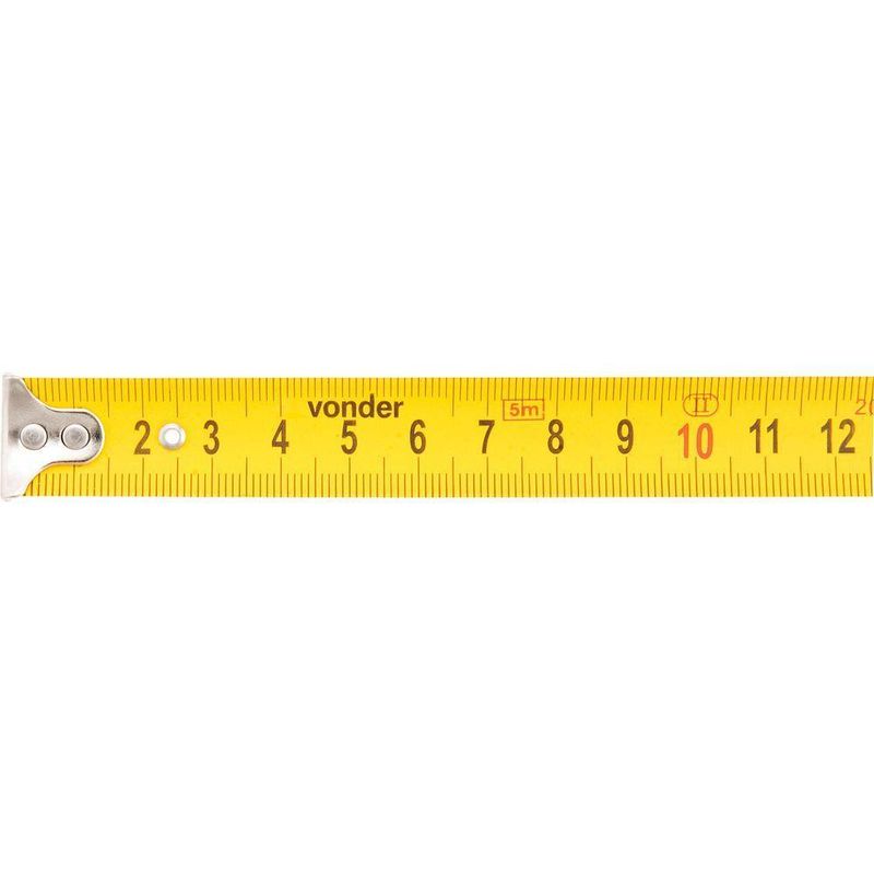 Trena Aço 5mx19mm Curta Mm/mm VonderConteúdo da embalagem1 TrenaAplicações e dicas de usoIndicada para medições em geralDestaques e diferenciaisPossui estojo anatômico em ABS de alta resistência. Fita em aço com pintura fosca antirreflexo, numeração contínua e graduação em milímetros, facilitando a leitura e proporcionando maior precisão. Possui trava da fita que facilita a leitura, alça em nylon e presilha para cinto, auxiliando no e durante o uso. Botão para travamento rápido que confere maior praticidade. Conta ainda com gancho ajustável na ponta da fita, permitindo medições internas e externas mais precisas.DETALHES TÉCNICOSComprimento da trena:5 mLargura da fita da trena:19,0 mmRevestimento da fita da trena:PintadoAcabamento da fita da trena:Pintura fosca antirreflexoGraduação da trena:mmMaterial da caixa da trena:ABS de alta resistênciaSistema de trava da trena:BotãoClasse de precisão:Classe II Produto: Trena