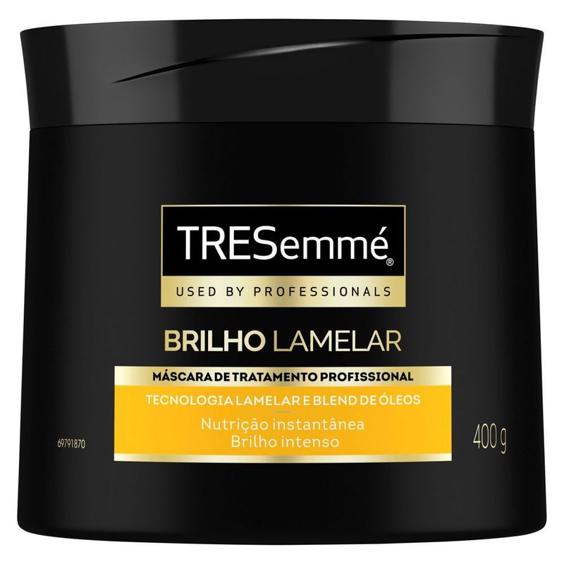 Tresemmé Máscara Tratamento Lamelar 400g Máscara de Tratamento TRESemmé Brilho Lamelar 400g – Nutrição e Brilho Intenso Descubra a nova Máscara de Tratamento TRESemmé Brilho Lamelar, projetada para proporcionar um efeito gloss intenso e deslumbrante, oferecendo até 7X mais brilho¹ aos seus cabelos. Este tratamento revolucionário, inspirado nas últimas tendências internacionais de salão, agora está disponível para você em casa. Benefícios e Tecnologia da Máscara TRESemmé Brilho Lamelar: Efeito Gloss Máximo: Proporciona um brilho impactante e luminoso desde a primeira aplicação, com um efeito gloss em sua máxima intensidade.Tecnologia Lamelar Inovadora: A avançada tecnologia lamelar trata os fios profundamente, destacando o brilho natural e corrigindo instantaneamente irregularidades capilares.Nutrição Superior Imediata: Garante uma nutrição intensa e rápida, restaurando a saúde e vitalidade de todos os tipos de cabelo, do liso ao cacheado. Experimente a Linha Completa TRESemmé Brilho Lamelar: Sérum de Tratamento Brilho Lamelar: Com um exclusivo blend de óleos e a revolucionária tecnologia lamelar, este sérum leve pode ser usado diariamente como tratamento ou como creme leave-in.Óleo Finalizador Nutritivo Brilho Lamelar: Alinha e restaura as pontas dos cabelos para um brilho imediato e duradouro.TRESemmé – A Marca Aprovada por 9 em Cada 10 Cabeleireiros Experimente a Máscara de Tratamento TRESemmé Brilho Lamelar 400g e transforme seu cabelo com nutrição e brilho profissionais no conforto da sua casa. INFORMAÇÕES ADICIONAIS DO FABRICANTE: UNILEVER • A Máscara de Tratamento TRESemmé Brilho Lamelar possui tecnologia lamelar, que corrige instantaneamente as irregularidades dos fios, devolvendo uma superfície uniforme, nutrida e com brilho intenso• Máscara de tratamento que blinda os fios com exclusivas lamelas para um cabelo com 7X mais brilho desde o primeiro uso* e efeito reflexivo• Com a revolucionária tecnologia Lamelar combinada com exclusivo blend de óleos, proporciona nutrição superior imediata e uma correção instantânea das irregularidades capilares para cabelos com brilho• A Máscara de Tratamento TRESemmé Brilho Lamelar garante o efeito gloss na sua máxima intensidade• A linha TRESemmé Brilho Lamelar proporciona nutrição e brilho intenso aos fios• Tratamento inovador de salão, sem pesar os fios. Para todos os tipos de cabelos Conheça a nova linha TRESemmé Brilho Lamelar para cabelos com efeito gloss em sua máxima intensidade para cabelos com 7X mais brilho*. Um revolucionário tratamento de salão, tendência internacional, agora em sua casa. A Máscara de Tratamento Profissional TRESemmé Brilho Lamelar foi desenvolvida com fórmula profissional para trazer mais brilho para todos os tipos de cabelo, do liso ao cabelo ondulado. A linha oferece: 1. Efeito gloss em sua máxima intensidade: Com um exclusivo blend de óleos, a linha proporciona um efeito gloss deslumbrante, resultando em um cabelo impactante e luminoso desde o primeiro uso. 2. Revolucionária tecnologia lamelar: Com a tecnologia lamelar inovadora, os fios serão tratados fortemente, destacando o brilho do cabelo e proporcionando nutrição superior imediata e uma correção instantânea das irregularidades capilares. Experimente também a dupla queridinha imbatível, junto do shampoo e condicionador TRESemmé Brilho Lamelar, que trata e finaliza seu cabelo: 1. Trata: Sérum de Tratamento Brilho Lamelar pode ser usado todos os dias tanto como tratamento ou como creme leave-in; 2. Finaliza: Óleo finalizador nutritivo Brilho Lamelar alinha e restaura as pontas para brilho imediato. TRESemmé, a marca aprovada por 9 em cada 10 cabeleireiros** *Avaliado por painel de experts. Com uso da linha completa. **Pesquisa realizada com profissionais de salão de beleza no Brasil.