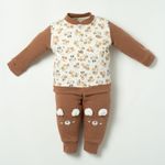 O Trijunto Body Curto + Cardigan + Calça da Hug, confeccionado em suedine macio, oferece conforto e praticidade. O body curto possui abertura veste fácil, o cardigan com botões proporciona uma troca prática e aconchego nos dias frescos, e a calça garante um ajuste confortável e liberdade de movimento. DIFERENCIAIS Nossas malhas 100% algodão passam por rigorosos processos de qualidade. Selecionamos fios de algodão com fibras longas e de altíssima qualidade, proporcionando um toque suave e duradouro em nossos suedines. Nossas tecelagens utilizam teares modernos que transformam os melhores fios em malhas estáveis, duradouras e confortáveis, com um nível ideal de gramatura, permitindo uma troca de temperatura natural e saudável entre a pele sensível do bebê e o ambiente. Nossas estampas digitais são produzidas com os métodos mais modernos do mundo, resultando em desenhos autorais com traços delicados e suaves. As tintas utilizadas possuem certificação OEKO-TEX® ECO PASSPORT e são à base de água, tornando o processo totalmente ecológico e seguro para a pele humana. Isso nos permite economizar até 95% dos recursos ambientais em comparação com outros métodos tradicionais da indústria têxtil.- Estampa exclusiva HUG CARACTERISTICAS Gênero: Masculino Cor: Bege / Marrom Composição: Suedine 100% algodão MEDIDAS PR - Abaixo de 52 cmRN - Ate 62 cm P - 62 ate 67 cm (0-3 Meses)M - 67 ate 72 cm (3-6 Meses)G - 72 ate 77 cm (6-9 Meses)GG - 77 ate 82 cm (9-12 Meses)