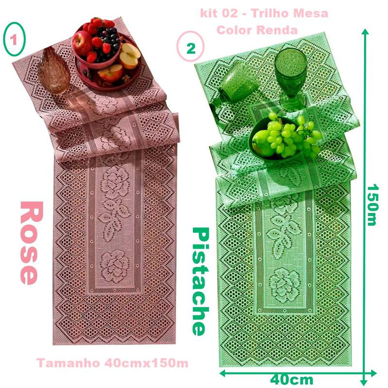 ?O trilho de mesa interlar color pistache 40cm x 150cm, leva a beleza da renda para sua mesa, deixando o ambiente ainda mais agradável. Seu tema floral traz a delicadeza da natureza, tornando o ambiente mais acolhedor.Trilho para Mesa Interlar Renda 100% Poliéster Color 40cm x 150cm ( 02 Unidades )Rose e PistacheTodas as informações divulgadas são de responsabilidade do fabricante/fornecedor.Marca: InterlarClassificação: TrilhoTecido: RendaComposição (Fios): 100% PoliésterConteúdo e Medidas: Trilho de Mesa Renda Color - 02 UnidadesTamanho( 40cm x 150m) cadaColeção / Sortimento: Color MesaProduto Licenciado por InterlarCor: Pistache e RoseFabricante: InterlarCódigo de Barra: 7892774417046 e 7892774000774Garantia(Fabricante): Contra Defeito de FabricaçãoObservação: Informações Sujeitas a Alterações sem Aviso Prévio.Imagens Meramente IlustrativasINFORMAÇÕES IMPORTANTES: Item composto apenas por 02 Trilho de Mesa,os demais itens são meramente decorativos e NÃO fazem parte do conteúdo da embalagem.Aviso : - Todas as medidas são valores aproximados e podem sofrer alguma variação.- As cores podem sofrer uma pequena variação, dependendo do lote do produto e das configurações do seu computador.