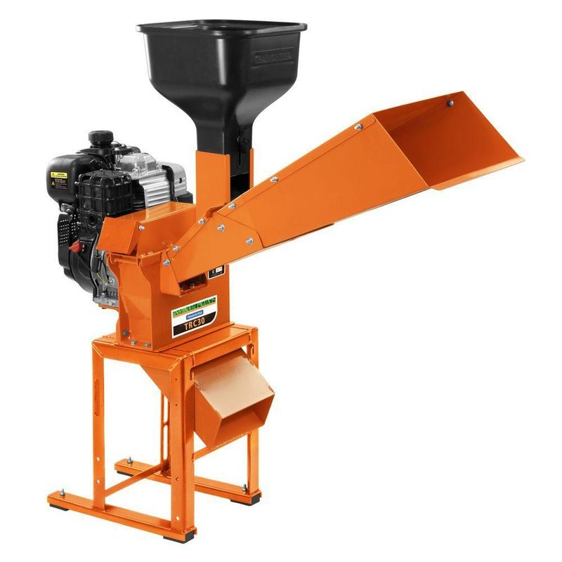 Triturador A Combustão Tramontina Trc30 Com Suporte Quadrado Motor 224 Cc E Saída LateralTriturador a Combustão Tramontina TRC30 com Suporte Quadrado Motor 224 cc e Saída LateralO triturador a combustão Tramontina TRC30 com suporte quadrado, equipado com um potente motor de 224 cilindradas e saída lateral, é a solução ideal para quem busca eficiência e robustez no processamento de forragens. Projetado para facilitar o manejo de materiais orgânicos, este triturador é perfeito para pequenas e médias propriedades rurais, garantindo alta performance na trituração de diversos tipos de vegetação e resíduos agrícolas. Seu suporte quadrado confere estabilidade e segurança durante o uso, enquanto o motor a combustão proporciona autonomia e praticidade em locais sem acesso à energia elétrica. Invista no triturador forrageiro Tramontina TRC30 e otimize suas tarefas agrícolas com qualidade e durabilidade. - Motor 4 tempos a combustão de 224 cc.- Fabricado com chapa de aço reforçada, proporcionando maior vida útil ao equipamento.- Peças metálicas possuem pintura eletrostática a pó, que tem uma melhor apresentação visual e maior proteção contra oxidação.- Duas lâminas de corte fabricadas em aço carbono especial de alta qualidade e com tratamento térmico, dando durabilidade e resistência ao material.- 2 martelos fixos que auxiliam na quebra dos materiais, aumentam a produtividade e possuem maior autonomia, pois é possível utilizar os 4 cantos.- Regulagem de corte dos materiais.- Com saída lateral.- Possui ganchos para prender o saco na saída inferior, proporcionando total aproveitamento do material triturado.- Coxim de borracha para absorver as vibrações do equipamento.- Equipado com funil para grãos e calha para pasto.- Possui no funil superior um sistema de regulagem de entrada de grãos.- Acompanhado de quatro peneiras: a peneira de 3 mm (quirera fina) possui uma produção média de 130-260 kg/h, a peneira de 5 mm (quirera grossa) possui uma produção média de 250-550 kg/h, a peneira de 10 mm (rolão) possui uma produção média de 130-300 kg/h e a peneira lisa (forragem) possui uma produção média de 550-1050 kg/h.- Compacto e eficiente, ocupa pouco espaço e oferece excelente rendimento.- Uso doméstico.- Rede de Assistência Técnica em todo o Brasil. Acesse: