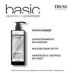 O TRUSS Basic Conditioner - Condicionador 1000ml é um condicionador de uso profissional e diário, desenvolvido para todos os tipos de cabelo, especialmente cabelos normais a secos. Sua fórmula altamente nutritiva, enriquecida com ativos como creatina, ceramidas, fosfolipídios, vitaminas E e F, e lipo nutrient, proporciona hidratação intensa, restauração do brilho e proteção contra o ressecamento. Ideal para cuidados diários, momentos de relaxamento, primavera, verão, outono, inverno e climas quentes ou frios, o condicionador promove maleabilidade, controle de frizz e preparação para procedimentos como corte, escova e penteado. O frasco de 1000ml com dosador, em plástico reciclável, é perfeito para uso prolongado em salões ou em casa, integrando cronogramas capilares de hidratação e nutrição. Vegano e cruelty-free, é uma escolha prática e eficaz para cabelos saudáveis. Características Nome do Produto: Basic Conditioner Marca: TRUSS Linha: Basic Versão: Padrão Categoria: Condicionador Ingredientes Principais: Creatina, Ceramidas, Fosfolipídios, Vitamina E, Vitamina F, Lipo Nutrient Modo de Aplicação: Após o shampoo, aplique o condicionador do comprimento às pontas, massageie suavemente e deixe agir por 2 minutos. Enxágue bem. Especificações do Produto Tipo de Produto: Condicionador Volume: 1000ml Composição: Fórmula vegana, cruelty-free, livre de parabenos e sulfatos, com ativos nutritivos Tipos de Cabelo: Todos os tipos, normais, secos, danificados, coloridos, quimicamente tratados Tipos: Uso Diário, Hidratação, Nutrição Ocasiões: Cuidados Diários, Momentos de Relaxamento, Primavera, Verão, Outono, Inverno, Clima Quente, Clima Frio Embalagem: Frasco plástico de 1000ml com dosador, reciclável pH: 4.0 - 5.0 Benefícios do Produto Eficácia: A fórmula com creatina e ceramidas restaura a estrutura dos fios, enquanto fosfolipídios e vitaminas E e F hidratam profundamente, promovendo brilho intenso. O lipo nutrient protege contra o ressecamento e fortalece os cabelos. Durabilidade: Uso diário melhora a maleabilidade, reduz o frizz e protege cabelos coloridos, com resultados visíveis desde a primeira aplicação. Versatilidade: Indicado para todos os tipos de cabelo, ideal para rotinas de cuidado capilar e procedimentos profissionais. Design/Praticidade: Frasco de 1000ml com dosador é econômico e ideal para uso profissional ou doméstico, com embalagem reciclável. O TRUSS Basic Conditioner - Condicionador 1000ml hidrata e restaura todos os tipos de cabelo com uma fórmula rica em creatina e vitaminas, ideal para cuidados diários e cronogramas capilares. Vegano, com embalagem prática, promove fios macios, brilhantes e saudáveis.
