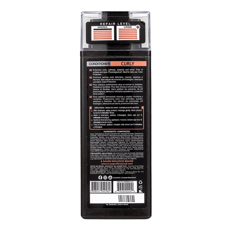 O Truss Curly Condicionador foi desenvolvido especialmente para cabelos cacheados e ondulados, proporcionando hidratação profunda e definição aos fios. Sua fórmula rica em ingredientes nutritivos ajuda a manter a umidade, deixando os cachos mais soltos, macios e com brilho natural. Além disso, o condicionador fortalece a estrutura dos fios, prevenindo o frizz e proporcionando um acabamento leve e natural. Características: Marca: Truss Linha: Curly Categoria: Condicionador Volume: 300ml Indicação: Cabelos cacheados, ondulados e secos Ativos Principais: Óleo de coco, manteiga de karité, pantenol Textura: Cremosa Livre de: Parabenos, sulfatos e silicones Cruelty-Free: Sim Benefícios do Produto: Hidratação intensa para cabelos cacheados e ondulados. Melhora a definição dos cachos, deixando-os mais naturais e sem frizz. Fórmula nutritiva que fortalece a estrutura dos fios. Proporciona brilho e maciez aos cachos, sem pesar. Modo de Aplicação: Após o uso do Truss Curly Shampoo, aplique o Truss Curly Condicionador nos cabelos úmidos, distribuindo uniformemente por todo o comprimento e pontas. Deixe agir por alguns minutos e enxágue bem. Para melhores resultados, use também outros produtos da linha Truss Curly. O Truss Curly Condicionador é a escolha ideal para quem busca hidratação, definição e controle do frizz em cabelos cacheados e ondulados. Com ativos nutritivos, ele deixa os cachos hidratados, macios e com brilho natural, realçando sua beleza de forma saudável.