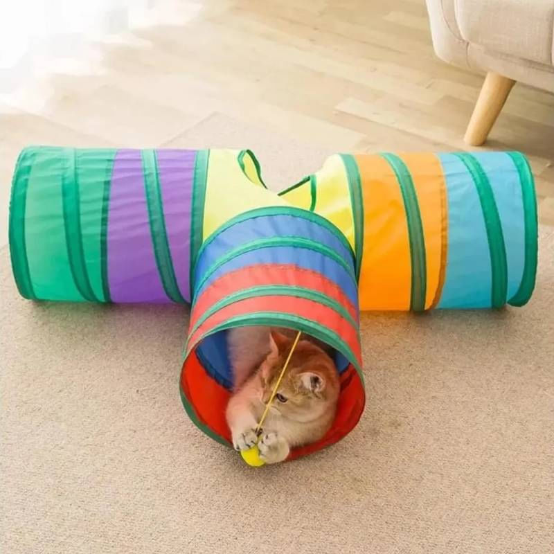 Túnel em T para Gato Labirinto Interativo Brinquedo Pet ===================================== O túnel colorido para gatos multi entrada é um brinquedo interativo ideal para estimular a curiosidade e o instinto de caça dos felinos. Com um design vibrante e várias entradas, ele proporciona diversão e exercício, permitindo que o gato explore, se esconda e brinque de forma envolvente. Além das múltiplas aberturas que tornam a brincadeira ainda mais dinâmica, um dos lados conta com uma bolinha pendurada, despertando ainda mais o interesse do pet e incentivando o jogo interativo Perfeito para gatos de todas as idades, o túnel ajuda a reduzir o estresse, promove o enriquecimento ambiental e mantém o pet ativo. ===================================== Contém: 01 Túnel em T Especificações: - Material: Poliéster e Aço - Medida: 76cm x 47cm - Diâmetro da Boca: 25cm - Formato: T - Dobrável - Multi Entradas ===================================== Devido à diferença entre monitores e iluminação diferentes, pode haver variação na tonalidade apresentada no anúncio. Medidas muito aproximadas.