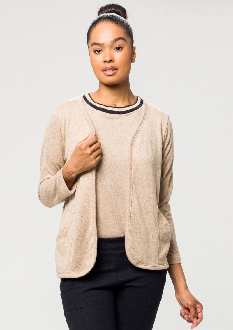 Twin Set composto por 2 peças. Casaquinho feminino na cor Bege, sem gola. Mangas longas e 2 bolsos frontais. Confortável e despojado, compõem diversos looks. Arrase! Composição da Malha: Confeccionado em 96% Poliéster e 4 % Viscose. Medidas Aproximadas: P: 64cm Comprimento x 98cm Busto x 98cm Cintura x 104cm Quadril. M: 66cm Comprimento x 104cm Busto x 104cm Cintura x 110cm Quadril. G: 68cm Comprimento x 110cm Busto x 110cm Cintura x 116cm Quadril. GG: 70cm Comprimento x 116cm Busto x 116cm Cintura x 122cm Quadril. XL: 72cm Comprimento x 122cm Busto x 122cm Cintura x 128cm Quadril. Blusa lisa na cor Bege com mangas Curtas. Decote redondo com acabamento em retilínea. Composição da Malha: Confeccionado em 96% Poliéster, 4 % Viscose. Medidas Aproximadas: P: 60cm Comprimento x 94cm Busto x 94cm Cintura x 102cm Quadril. M: 62cm Comprimento x 100cm Busto x 100cm Cintura x 108cm Quadril. G: 64cm Comprimento x 106cm Busto x 106cm Cintura x 114cm Quadril. GG: 66cm Comprimento x 112cm Busto x 112cm Cintura x 120cm Quadril. XL: 68cm Comprimento x 118cm Busto x 118cm Cintura x 126cm Quadril. Todos os dados informados são aproximados, do peso às medidas.