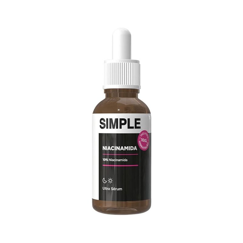 Ultra Sérum Simple Niacinamida 30ml Equilíbrio da oleosidade, uniformização da pele e fortalecimento da barreira cutânea. O Ultra Sérum Simple Niacinamida 30ml é um dermocosmético de uso externo formulado para regular a oleosidade, melhorar a textura da pele e promover um aspecto mais uniforme e saudável. Indicado para todos os tipos de pele, especialmente as mistas e oleosas, ele auxilia na redução de poros aparentes, manchas e vermelhidão, sem causar ressecamento. O que é e para que serve o Ultra Sérum Simple Niacinamida? O Ultra Sérum Simple Niacinamida é um sérum facial multifuncional que atua no controle do brilho, na melhora da textura e no fortalecimento da barreira de proteção da pele. Sua fórmula contribui para a uniformização do tom, redução de imperfeições e manutenção da hidratação, sendo ideal para uso diário na rotina de skincare. Benefícios e Diferenciais Auxilia no controle da oleosidade e do brilho; Reduz a aparência de poros dilatados; Contribui para a uniformização do tom da pele; Ajuda a suavizar manchas e marcas; Fortalece a barreira cutânea; Melhora a textura e o viço da pele; Auxilia na redução da vermelhidão; Hidrata sem pesar; Textura leve e de rápida absorção; Não comedogênico; Dermatologicamente testado. Principais Ativos e Como Atuam Niacinamida (Vitamina B3): Auxilia no controle da oleosidade, melhora a função de barreira da pele, reduz poros aparentes e contribui para a uniformização do tom; Agentes Hidratantes: Mantêm a hidratação da pele, prevenindo o ressecamento; Ativos Calmantes: Ajudam a minimizar a sensibilidade e a vermelhidão. Confira a composição completa na embalagem do produto. Modo de Uso Com a pele limpa e seca, aplique algumas gotas do Ultra Sérum Simple Niacinamida no rosto; Espalhe suavemente até completa absorção; Pode ser utilizado de manhã e à noite; Durante o dia, finalize com protetor solar. Advertências Uso externo; Não ingerir; Manter fora do alcance de crianças; Evitar contato com os olhos; Em caso de irritação, suspenda o uso; Armazenar em local fresco, seco e ao abrigo da luz. Indicação de Tipo de Pele O Ultra Sérum Simple Niacinamida 30ml é indicado para todos os tipos de pele, especialmente peles mistas, oleosas, acneicas e sensíveis, que necessitam de equilíbrio, uniformização e fortalecimento da barreira cutânea com um tratamento eficaz e seguro.