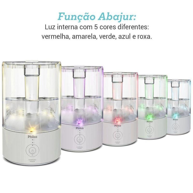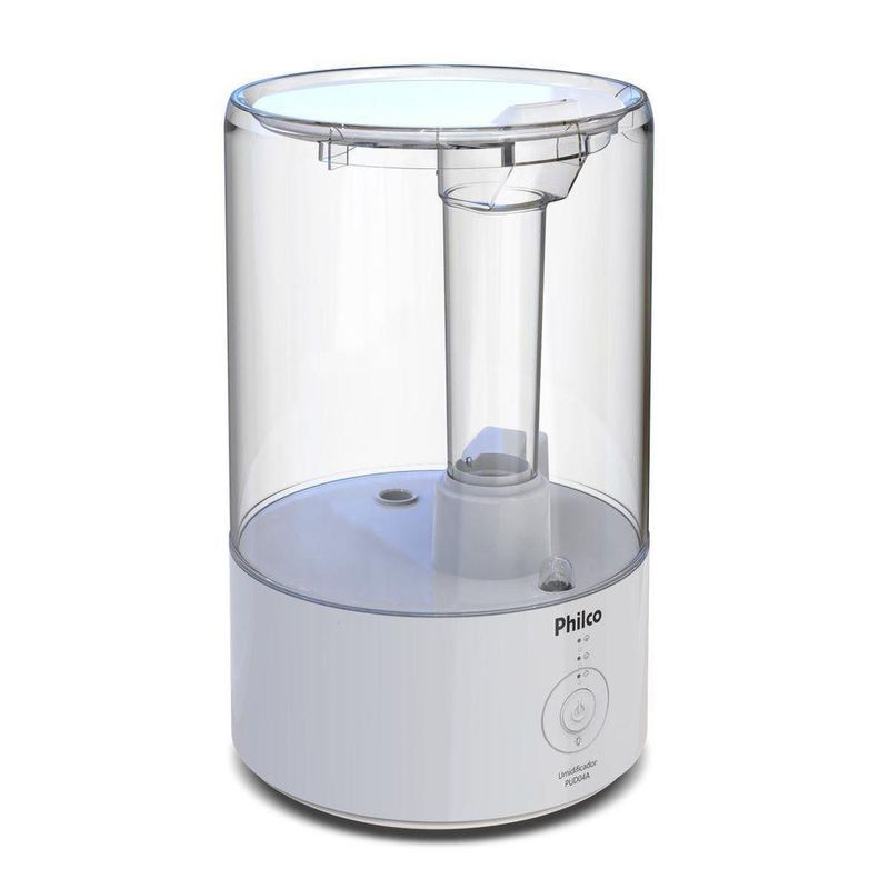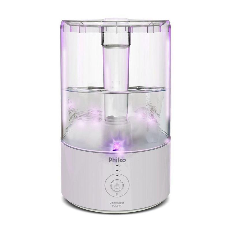 Umidificador 3 em 1 Philco 4,2L Óleos essenciais PUD04A BivoltDescubra o conforto e a sofisticação do Umidificador Philco Portátil 4,2L, ideal para quem busca um ambiente mais saudável e agradável.Com uma capacidade de reservatório de 4,2 litros, este umidificador garante a climatização por um tempo prolongado, proporcionando até 12 horas de funcionamento contínuo. O design moderno, harmoniza perfeitamente com diversos ambientes, adicionando um toque de elegância à sua casa.Transforme sua experiência ao adicionar óleos essenciais no compartimento interno, criando um ambiente relaxante e perfumado. Com três níveis de controle (leve, médio e intenso ), você ajusta a intensidade conforme sua necessidade. O painel touch/digital facilita o uso, enquanto a luz interna proporciona um clima agradável, permitindo relaxar e aproveitar a luz noturna.Adquira o Umidificador Philco Portátil e desfrute de maior conforto e bem-estar, este produto é perfeito para quem valoriza saúde e conveniência. O alerta para reposição de água no tanque e a portabilidade do umidificador garantem praticidade e confiança no uso diário. Garanta o seu Umidificador Philco Portátil 4,2L e transforme seu ambiente!• Luzes de funcionamento• Painel Touch• Tempo de funcionamento: 12h• Taxa de vapor por minuto: 300ml/h• Com difusor de aromas• Desligamento automático quando o reservatório fica vazio• Controle de saída vapor• 3 níveis de intensidade de névoa • Reservatório de água removível • Indicador de reservatório vazio• Cor do produto: Branco• Material / Composição do produto: Metal e plástico• 2 pinos• Capacidade total e útil: 4,2L.Especificações Técnicas:Marca: PhilcoCapacidade do reservatório: 4,2 LModelo: PUD04AAltura do produto: 33 cmLargura do produto: 21,6 cmComprimento do produto: 22 cmPeso do produto: 1,399 kgAltura com embalagem: 33 cmLargura com embalagem: 21,7 cmComprimento com embalagem: 21,7 cmPeso com embalagem: 1,118 kgGarantia (Dias): 360Observação: Somente faturamos para o nosso consumidor final, ou seja, não faturamos pedidos para CNPJ por este portal de vendas;