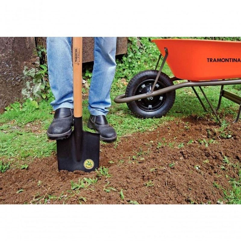 Vanga Com Ponta Tramontina Em Aço Cabo De Madeira 120cmPara o corte do solo na construção civil, jardinagem e agricultura, a vanga com ponta Tramontina 402/00 em aço com cabo de madeira 120 cm é a escolha ideal. Produzida em aço carbono temperado e cortada a laser, ela garante alta resistência, desempenho e durabilidade. Conta com pintura eletrostática a pó, que protege contra oxidação e aumenta a vida útil da peça. Seu cabo de 120 centímetros em madeira envernizada proporciona manuseio confortável e . Além disso, possui virola que permite apoiar o pé para facilitar a no solo, tornando o trabalho mais eficiente e menos cansativo.Recomendações de Uso:Modo de uso: Utilizada na agricultura, jardinagem e construção civil para o corte do solo. Para isso, possuem virola para apoiar o pé e forçar a entrada da vanga no solo. Para descarte dos produtos e embalagens siga as orientações de reciclagem vigentes.- Foto meramente ilustrativa.Informações Adicionais:- A vanga é fabricada em aço carbono especial de alta qualidade, cortada a laser;- É temperada em todo o corpo da peça, proporcionando maior resistência e menor desgaste durante o uso;- Recebe pintura eletrostática a pó, que tem uma melhor apresentação visual e maior proteção contra oxidação;- A tinta utilizada na pintura é isenta de metais pesados na sua composição, o que minimiza o impacto ambiental;- O cabo de 120 cm desta ferramenta, além de possuir ótima resistência, é produzido com madeira de origem renovável;- Cabo com acabamento envernizado, para um melhor acabamento e apresentação do produto. A camada protetora em verniz incolor realça sua tonalidade, concedendo brilho e um toque mais liso ao produto.