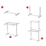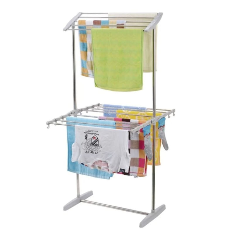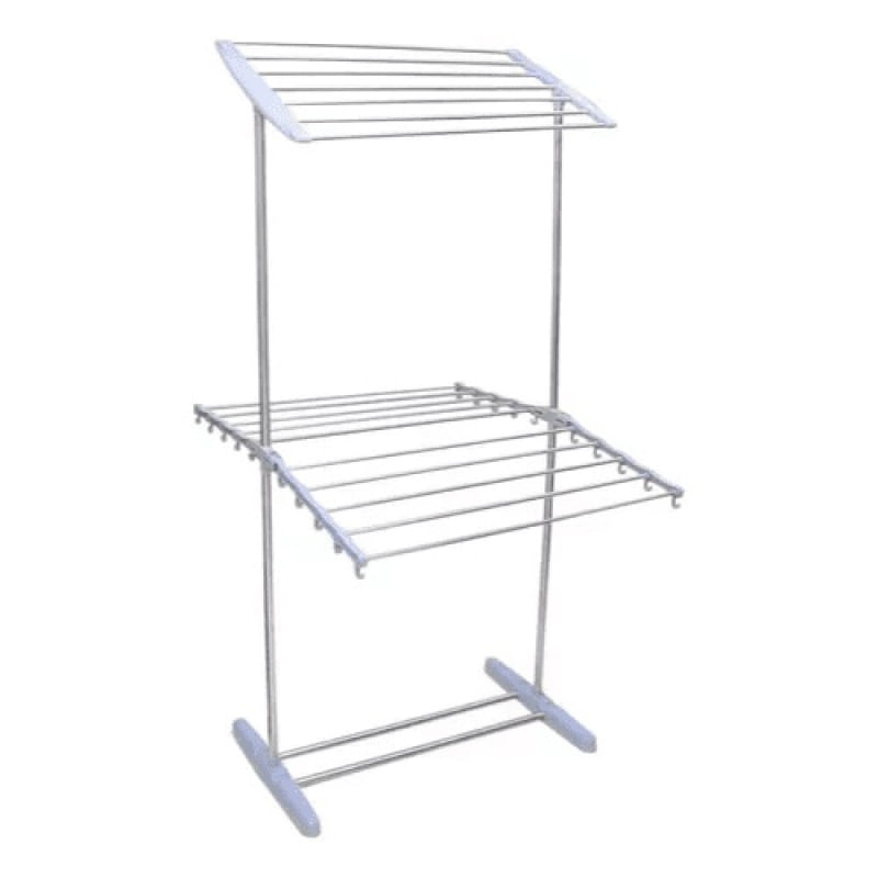 Varal de Chão Dobrável 2 Andares em Aço Inox: Praticidade e Resistência. Este varal de chão grande dobrável é a solução ideal para quem precisa de mais espaço para secar roupas. Com ele, você organiza a lavanderia de maneira eficiente, otimizando o seu tempo. Além disso, a estrutura robusta em aço inox garante alta durabilidade, resistindo à corrosão e ao tempo. Este varal de roupas 2 andares se adapta a qualquer ambiente e necessidade. A altura regulável permite que você pendure peças longas sem que arrastem no chão. Dessa forma, você evita danos às suas roupas. Ele também é portátil e fácil de guardar, sendo perfeito para apartamentos, casas pequenas e até mesmo para uso em áreas externas como varandas e quintais. As características e funcionalidades deste produto fazem dele uma excelente escolha. O varal suporta uma grande quantidade de roupas, chegando a até 40kg no total. Em outras palavras, você pode secar todas as suas peças de uma vez só, economizando tempo e energia. Este varal de chão de dois andares é sinônimo de versatilidade e eficiência, simplificando a sua rotina diária. Especificações do Produto Tipo: Varal de roupas regulável, dobrável e portátil Material: Aço inoxidável e plástico ABS de alta resistência Níveis: 2 prateleiras com regulagem de altura Capacidade: Suporta até 10 kg por prateleira (total de 40 kg) Varetas: Aço inox com 0,9 cm de diâmetro Características Adicionais: Base antiderrapante de silicone e barra para pendurar calçados Uso: Interno e externo Dimensões: Produto (montado): 36 x 62 x 130 cm Embalagem: 63 x 17 x 5 cm