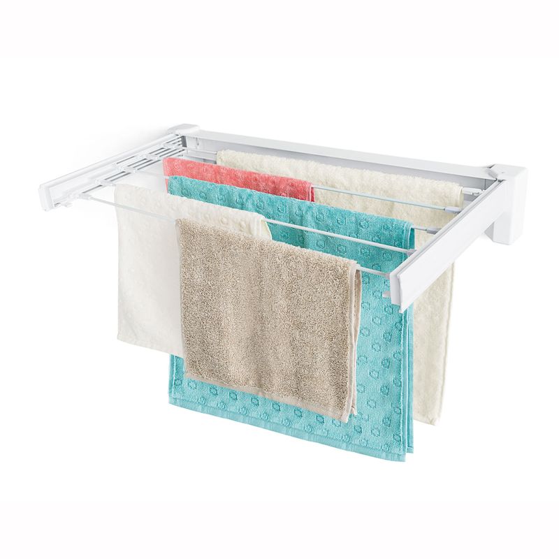 Log Varal retrátil é ideal para quem não tem muito espaço e quer deixar tudo sempre organizado. Dobrável, proporciona maior praticidade e otimização do espaço útil. - Pode ser instalado em área de serviço, terraços e etc. - O varal deve ser instalado somente em paredes e tem proteção contra corrosão. Suporta até 5kg - Tamanho do Aberto: 70 x 10. 5 x 37 cm - Ideal para quem não tem muito espaço e quer deixar tudo sempre organizado. - Retrátil, possui fácil manuseio com grande praticidade. - Máximo aproveitamento do espaço útilmaterial sintético, pigmento e aço inoxIdeal para secar roupas, toalhas e roupas de capa em lugares pequenos e com pouco espaço. - O varal deve ser instalado somente em paredes e tem proteção contra corrosão. Cor: Branca Fabricante: Ordene