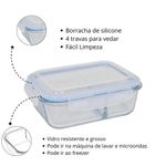 Vasilha De Vidro Hermética Com Tampa 1520ml Mantimentos Para Microondas Freezer CongeladorEscolha ideal para armazenar alimentos com segurança, praticidade e um toque de sofisticação.Com design moderno e funcional, ele combina resistência e versatilidade, sendo perfeito para conservar marmitas, mantimentos e ingredientes frescos por mais tempo. sua estrutura em vidro borossilicato de alta qualidade é altamente resistente a variações de temperatura, podendo ser utilizado no micro-ondas, geladeira, freezer e lava-louças sem perder a durabilidade. além disso, o material não absorve odores, não mancha e é totalmente livre de bpa, garantindo mais higiene e proteção para os alimentos.A tampa hermética de silicone oferece vedação segura e eficaz, evitando vazamentos e protegendo contra umidade e contaminações externas.O sistema de vedação ajustável mantém a frescura dos ingredientes por muito mais tempo, sendo ideal para refeições prontas, grãos, frutas, saladas, massas e diversas opções do dia a dia.Sua divisória interna facilita a organização, permitindo separar diferentes tipos de alimentos em um único recipiente, sem misturar sabores e texturas. perfeito para porções maiores e transporte de marmitas para o trabalho, academia ou passeios, este pote ainda conta com design empilhável, otimizando o espaço nos armários e geladeira, ajudando na organização da cozinha com muito mais praticidade e estiloCaracterística do Produto:-Freezer-Forno Micro-ondas-Lava LouçaEspecificações:Dimensões: 8cm altura x 17cm largura x 22cm comprimentoComposição: Polímeros Plástico e Vidro BorossilicatoCapacidade: 1520mlCor: Transparente com detalhe Azul na TampaPeso: 959gContém:01 Pote Retangular Hermético Com Divisória Vidro 1520ml