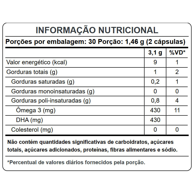 O Ômega 3 DHA Vegan, da Puravida, é um suplemento de ômega 3 que fornece 430 mg de DHA, extraído de forma sustentável, sem contaminantes e em ambiente controlado, da microalga schizochytrium, que é considerada uma das fontes mais puras desse nutriente. Sobre os ingredientes: Ômega 3 DHA de algas: ácido graxo de cadeia longa, mesma molécula que a encontrada nos óleos de peixes, crustáceos e moluscos, no entanto, extraído de origem 100% vegetal. Recomendação de consumo: Consuma 2 cápsulas por dia ou de acordo com a orientação do médico ou nutricionista. Por que escolher esse produto? 100% vegetal Alta concentração de DHA Livre de contaminantes Cápsulas vegetais Extraído de forma sustentável A Marca A Puravida é uma empresa com o propósito de promover uma alimentação sem comidas artificiais, pobres em nutrientes, ricas em conservantes, pesticidas, gorduras hidrogenadas ou com açúcar em excesso. Preocupa-se, com o impacto da alimentação na qualidade de vida e no meio ambiente, utilizando produtos frescos e de produção recente obtidos de cultivadores confiáveis e além de utilizar tecnologias para preservar, realçar e concentrar as propriedades dos alimentos.