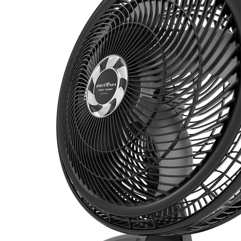Ventilador Britânia 2 Em 1 Tecnologia Maxx Force 176W BVT500 220VVentilador Britânia 2 em 1 Tecnologia Maxx Force 176W BVT500, diga adeus aos dias mais quentes!O Ventilador Britânia 2 em 1 Tecnologia Maxx Force 176W BVT500 é para quem busca facilidade: com seu sistema 2 em 1, que permite ser utilizado na mesa ou na parede. É também para quem busca praticidade: o sistema de articulação permite o ajuste em 3 oscilações diferentes, oscilação vertical e oscilação horizontal automática. Com a Tecnologia Maxx Force de hélice com 6 pás de 47 cm, além dos 176W de potência, desfrute do melhor desempenho e poder de ventilação em um só produto! Tudo isso com baixo consumo de energia, pois possui a classificação energética “A”. É muita performance com pouco gasto energético!O Ventilador Britânia conta ainda com grade removível de 58cm, mais praticidade na hora de montar, desmontar e limpar. Ajuste a velocidade conforme sua necessidade, pois possui 3 níveis de velocidade: suave, moderada e intensa. Tudo isso com o mínimo de ruídos! Mais conforto para você e sua família. Principais Características- 3 velocidades- Tecnologia Maxx Force 6: Hélice de 6 pás com grade de 58cm- Potência de 176W- Super Silencioso- Grade removível de 58cm que obedece às normas de segurança (contato com partes móveis)- Oscilação horizontal automática com novo sistema de acionamento (botão integrado à carcaça)- Sistema de articulação para ajuste da inclinação vertical com 3 opções- Porta-fio- Novo sistema de travamento entre grade frontal e traseira- Remoção da grade frontal somente com uso de ferramenta, conforme normas de segurança- Motor com fusível térmico de segurança- Alça na grade traseira para transportar o aparelho- Classificação energética A.Observação: Somente faturamos para o nosso consumidor final, ou seja, não faturamos pedidos para CNPJ por este portal de vendas.Especificações TécnicasMarca: BritâniaModelo: BVT500Cor da Estrutura: PretoCor das Pás: CinzaQuantidade de pás: 6Potência: 176 WTipo: De mesaDiâmetro: 58 cmFunção repelente: NãoMaterial das Pás: PlásticoEstado: NovoAltura do produto: 71,5 cmLargura do produto: 37,5 cmComprimento do produto: 57 cmPeso do produto: 3,918 kgAltura com embalagem: 72,3 cmLargura com embalagem: 57,5 cmComprimento com embalagem: 15,9 cmPeso com embalagem: 4,524 kgGarantia: 360 Dias