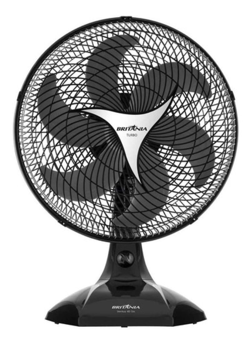 MOBILAR ELETRO HÁ MAIS DE 25 ANOS INOVANDO EM PRODUTOS E ATENDIMENTO VENTILADOR BRITANIA 40CM TURBO 6 PAS Ventilador Britânia BVT4000 tem 130W de potência e 3 velocidades para você refrescar e jogar o calor pra longe. O Sistema oscilante permite melhor distribuição do ar no ambiente deixando o ar mais fresco e agradável para dias ou noites mais tranquilas. 3 velocidades; Hélice de 6 pás de 40cm; Grade que obedece às normas de segurança (contato com partes móveis); Oscilação horizontal automática com novo sistema de acionamento (botão integrado à carcaça); Sistema de articulação para ajuste da inclinação vertical Novo sistema de travamento entre grade frontal e traseira; Remoção da grade frontal somente com uso de ferramenta, conforme normas de segurança; Motor com fusível térmico de segurança; Especificações Altura61,00cm Largura47,50cm Profundidade32,50cm Peso2,64Kg