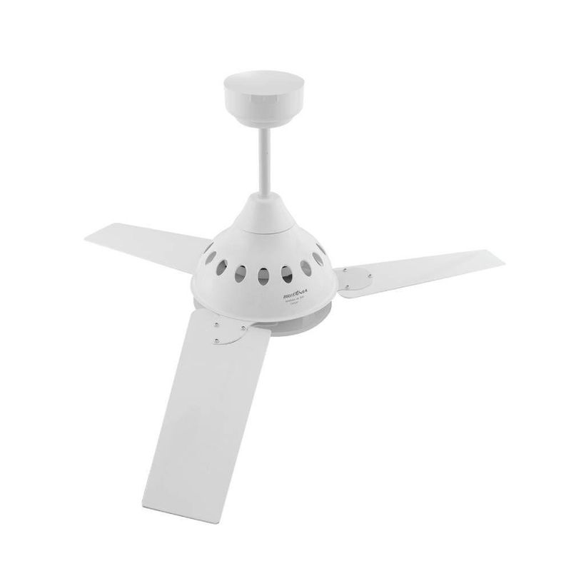 Ventilador Britânia Teto Cancun Branco 3 Pás — Ventilador, Exaustor e uma Elegante LumináriaO Ventilador de Teto Britânia Cancun BVT01B une eficiência, conforto e versatilidade para manter seu ambiente sempre agradável. Com 131W de potência e 3 pás em plástico resistente, garante fluxo de ar constante e silencioso, ideal para o dia a dia em casa ou no trabalho.Mais que um simples ventilador, ele é 3 em 1: funciona como ventilador, exaustor e luminária para duas lâmpadas, trazendo praticidade e aproveitamento total em um único produto. São 3 velocidades baixa, média e alta que permitem ajustar a ventilação conforme a necessidade, seja para refrescar ou eliminar odores indesejados.Seu acabamento branco discreto combina facilmente com diferentes estilos de decoração, mantendo a harmonia do espaço. Além disso, sua estrutura robusta e materiais de qualidade oferecem durabilidade e confiança no uso contínuo.Com baixo consumo de energia, alta performance de vento e instalação prática, o Ventilador de Teto Britânia Cancun é a solução completa para quem busca conforto térmico, eficiência e design em um só produto.Especificações técnicasMarca: BritâniaModelo: BVT01BReferência: 33021001Cor da Estrutura: BrancoCor das Pás: BrancoVoltagem: 127VQuantidade de pás: 3 Potência: 131WTipo: de TetoFunção repelente: NãoMaterial das Pás: PlásticoDimensões sem Embalagem: 106,8 L x 47,5 A x 106,8 PDimensões com Embalagem: 51,4 L x 17,3 A x 31,7 PPeso sem Embalagem: 4,8KgPeso com Embalagem: 5,6KgGarantia: 12 meses
