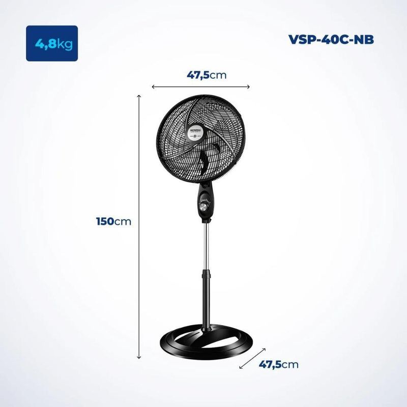 Ventilador De Coluna Mondial Vsp-40c-b 40cm 6 Pas - 220vDescricao O ventilador de colunaSuper Power VSP-40C-B possui 40 cm de diametro e helice com 6 pas, garantindo um ambiente mais refrescante e agradavel. Com coluna ajustavel entre 1,19 e 1,50 metros, o aparelho permite ajuste da altura do vento. O sistema de ventilacao da Mondial apresenta baixo nivel de ruido, assegurando o silencio necessario para uma excelente noite de sono.VENTO SUPER POWER:A linha de Ventiladores Super Power possui 40cm de diametro e 6 Pas. O design, aliado a potencia, promove maior intensidade do vento e e garantia de um ambiente fresco e agradavel.COLUNA AJUSTAVEL:Possui regulagem de 1,19 a 1,50 metros, permitindo o ajuste ideal da altura do vento.MAIS SILENCIO E CONFORTO:O sistema de ventilacao da Mondial apresenta baixo nivel de ruido, assegurando o silencio necessario para momentos de concentracao e uma excelente noite de sono.MAIOR DISTRIBUICAO DE AR:O Sistema Oscilante Continuo amplia o raio de alcance do vento no ambiente, permitindo uma distribuicao de ar mais eficiente nos comodos da casa.INCLINACAO VERTICAL REGULAVEL :Para um direcionamento ideal do fluxo do ar.CONTROLE DE VELOCIDADE:As 3 opcoes de velocidade permitem adequar o vento a sua necessidade: Maxima Turbo, Media Conforto e Minima Silencioso.FACILIDADE NA LIMPEZA :A grade frontal removivel oferece mais facilidade na limpeza das helices, o que simplifica a lavagem e a remocao de poeira, e garante melhor qualidade do ar.ALCA DE TRANSPORTE + PORTA-FIO:Alem do design compacto, a alca traseira permite que o ventilador seja transportado entre os comodos da casa com facilidade. Com o porta-fio embutido, voce armazena o fio eletrico dentro do aparelho apos o uso.*Imagens meramente ilustrativas.Especificacao Tecnica Cor: Preto Voltagem (Tensao): 220V Itens inclusos: 01 Ventilador - Manual de instrucoes Potencia: 140W Dimensoes do produto: 150cm x 45cm x 41cmNumero de velocidades: 3 velocidadesQuantidade de pas: 6 pasColuna ajustavel: SimTipo de ventilador: Ventilador de ColunaPeso: 5,70kgInclinacao regulavel: SimOscilante: SimDescricao O ventilador de colunaSuper Power VSP-40C-B possui 40 cm de diametro e helice com 6 pas, garantindo um ambiente mais refrescante e agradavel. Com coluna ajustavel entre 1,19 e 1,50 metros, o aparelho permite ajuste da altura do vento. O sistema de ventilacao da Mondial apresenta baixo nivel de ruido, assegurando o silencio necessario para uma excelente noite de sono.VENTO SUPER POWER:A linha de Ventiladores Super Power possui 40cm de diametro e 6 Pas. O design, aliado a potencia, promove maior intensidade do vento e e garantia de um ambiente fresco e agradavel.COLUNA AJUSTAVEL:Possui regulagem de 1,19 a 1,50 metros, permitindo o ajuste ideal da altura do vento.MAIS SILENCIO E CONFORTO:O sistema de ventilacao da Mondial apresenta baixo nivel de ruido, assegurando o silencio necessario para momentos de concentracao e uma excelente noite de sono.MAIOR DISTRIBUICAO DE AR:O Sistema Oscilante Continuo amplia o raio de alcance do vento no ambiente, permitindo uma distribuicao de ar mais eficiente nos comodos da casa.INCLINACAO VERTICAL REGULAVEL :Para um direcionamento ideal do fluxo do ar.CONTROLE DE VELOCIDADE:As 3 opcoes de velocidade permitem adequar o vento a sua necessidade: Maxima Turbo, Media Conforto e Minima Silencioso.FACILIDADE NA LIMPEZA :A grade frontal removivel oferece mais facilidade na limpeza das helices, o que simplifica a lavagem e a remocao de poeira, e garante melhor qualidade do ar.ALCA DE TRANSPORTE + PORTA-FIO:Alem do design compacto, a alca traseira permite que o ventilador seja transportado entre os comodos da casa com facilidade. Com o porta-fio embutido, voce armazena o fio eletrico dentro do aparelho apos o uso.*Imagens meramente ilustrativas.Especificacao Tecnica Cor: PretoVoltagem (Tensao): 220VItens inclusos: 01 Ventilador - Manual de instrucoesPotencia: 140WDimensoes do produto: 150cm x 45cm x 41cmNumero de velocidades: 3 velocidadesQuantidade de pas: 6 pas Coluna ajustavel: Sim Tipo de ventilador: Ventilador de Coluna Peso: 5,70kg Inclinacao regulavel: Sim Oscilante: Sim