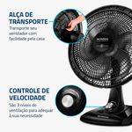 Com 40 cm e 3 velocidades, o Ventilador Mondial Super Power VSP-40-B é vento mais forte. Ele tem baixo nível de ruído, ajuste de altura, sistema oscilante lateral, inclinação vertical regulável, além ser compacto e ter baixo consumo. Sua hélice tem design aerodinâmico, o que proporciona um vento forte. Como ele faz menos barulho, em qualquer uma das 3 velocidades, você dorme tranquilamente. Para ambientes mais amplos, você pode usar o sistema oscilante. A inclinação vertical regulável direciona o fluxo de ar para cima ou para baixo. Como a grade frontal é removível, ele ainda é fácil de montar e desmontar para limpeza. Ele também é fácil de carregar porque tem uma alça para transporte. A base antiderrapante traz mais segurança.