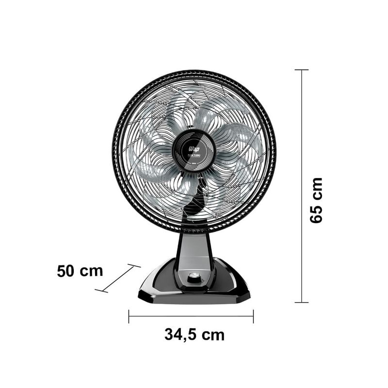 Ventilador de Mesa/Parede Wap Flow Turbo com 8 pás e 3 velocidades 180W - Preto e Cinza