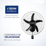 Ambiente Refrescante e Ventilado O design aerodinâmico e de alta performance do Ventilador da Mondial proporciona maior intensidade do vento e melhor distribuição de ar, resultando em um ambiente mais fresco e arejado. Com uma potência de 150W, este ventilador garante vento mais forte e maior vazão de ar, proporcionando um ambiente mais refrescante. Controle de Velocidade e Distribuição Eficiente de Ar Ventilador de Parede apresenta três opções de velocidade para ajustar o fluxo de ar conforme sua preferência. Já o sistema oscilante contínuo, amplia o alcance do vento, garantindo uma distribuição eficiente e uniforme de ar por todo o ambiente. Otimização do Espaço com Suporte de Aço Reforçado Ideal para otimizar o espaço, o ventilador Turbo Pro possui um suporte de aço reforçado que assegura maior sustentação e durabilidade ao fixá-lo à parede. Além disso, a grade frontal de aço desmontável proporciona segurança adicional, resistência e facilita a limpeza das hélices, tornando o ventilador mais prático e durável.