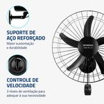 O Ventilador de Parede Turbo Pro NVP-PRO-50 possui 50 cm de diâmetro e um design aerodinâmico de alta performance, que garante um ambiente sempre fresquinho, mesmo nos dias de calor intenso. O motor Turbo Pro de 150W, aliado a hélice de 5 pás, gera mais intensidade do vento e maior vazão do ar. Saiba mais sobre o NVP-PRO-50 da Mondial:VENTILADOR DE 50CM + HÉLICE COM 5 PÁS: O design aerodinâmico e de alta performance do NVP-PRO-50 proporciona maior intensidade do vento e melhor distribuição de ar. O resultado é um ambiente mais fresco e arejado!OTIMIZAÇÃO DO ESPAÇO + SUPORTE DE AÇO REFORÇADO: O ventilador de parede permite maior otimização do espaço. Além disso, o suporte que prende o aparelho à parede é de aço reforçado, garantindo maior sustentação e durabilidade.POTÊNCIA: 150W: Garante vento mais forte e com maior vazão do ar.GRADES DE AÇO DESMONTÁVEL: A grade frontal de aço desmontável oferece mais segurança, resistência e facilidade na limpeza das hélices, o que simplifica a lavagem e a remoção de poeira, e garante melhor qualidade do ar.CONTROLE DE VELOCIDADE: As 3 opções de velocidade permitem adequar o vento à sua necessidade: Máxima Turbo, Média Conforto e Mínima Brisa.MAIOR DISTRIBUIÇÃO DE AR: O Sistema Oscilante Contínuo amplia o raio de alcance do vento no ambiente, permitindo uma distribuição de ar mais eficiente nos cômodos da casa.INCLINAÇÃO VERTICAL REGULÁVEL: Para um direcionamento ideal do fluxo do ar.UM ANO DE GARANTIA MONDIAL: A Mondial é a escolha de milhões de consumidores. Mondial, a escolha inteligente!