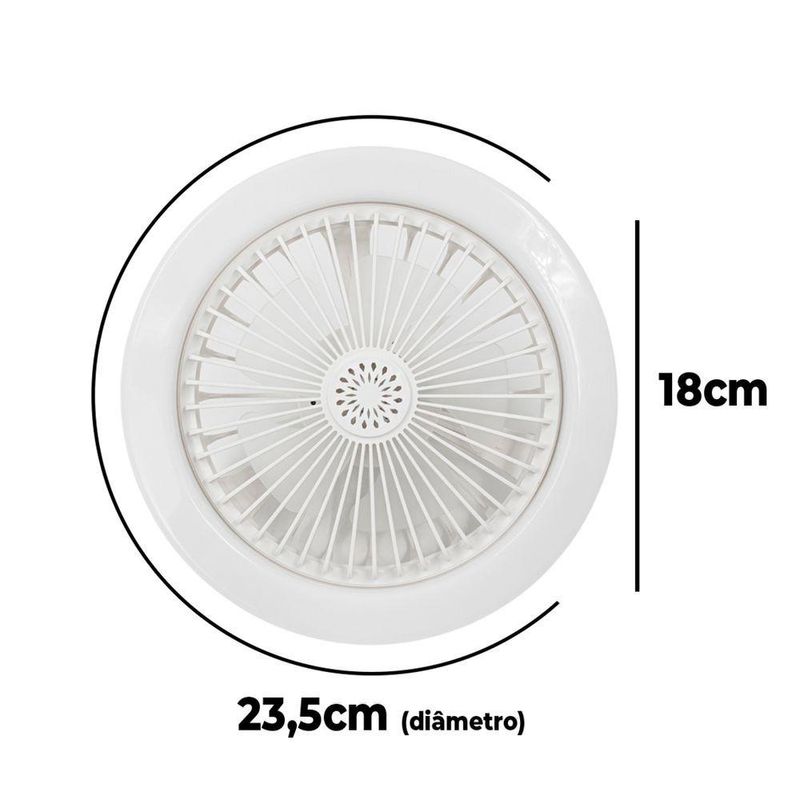Ventilador De Teto Led Luzes Integradas Com Controle Remoto 36 Branco BivoltO Ventilador Luminária de Teto é multifuncional com design 2 em 1 e acompanha controle remoto. Com três velocidades ajustáveis e 3 modos de trabalho: 1. luz acesa, 2. ventiladores ligados, 3. ventiladores e luz ligados. Fácil de instalar, ao montar, basta parafusar qualquer suporte de lâmpada E27, instalação rápida e eficiente.Ideais para quartos e creches, também podem ser usadas em salas de estar, escritórios, quartos, cozinhas, escritórios, etc. Ideal para manter o ambiente fresco nos meses quentes de verão. As luzes- Modelo:Ventilador De Teto Led- Material: Plástico, Componentes Elétricos.- Potência da lâmpada LED: 36W- Cor da Luz (Ajustável): 2800K-6500K, luz branca fria, neutra e quente - 2400lm- Alimentação de Energia: Suporte de Lâmpada E27- Tensão:85-265V (BIVOLT)- Dimensões Aprox.: 23,5cm (Diâmetro) X 18cm (Comprimento)- Peso Aprox.: 350gItens Inclusos na Embalagem:- 01x Ventilador De Teto Led- 01x Controle Remoto