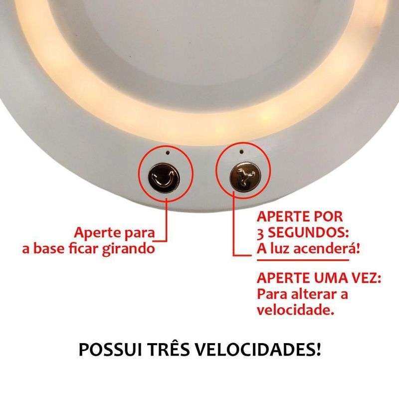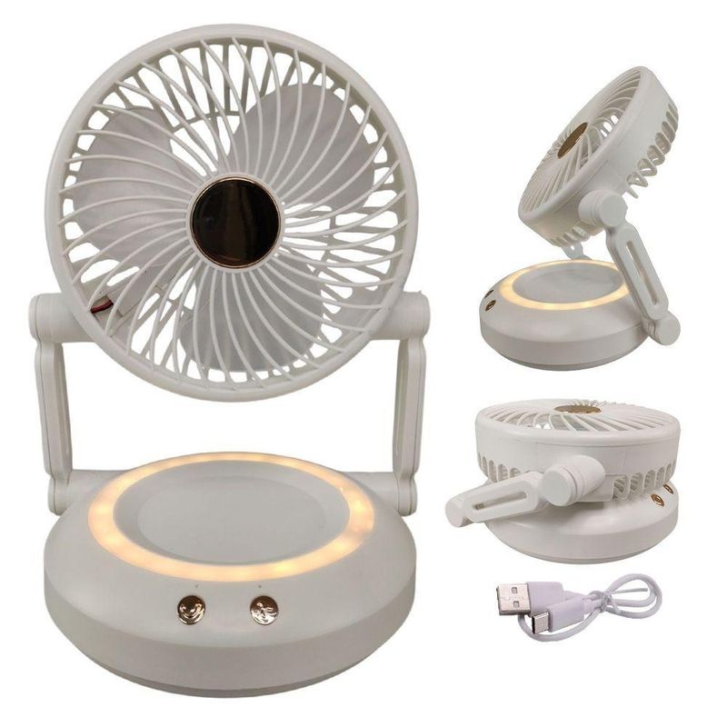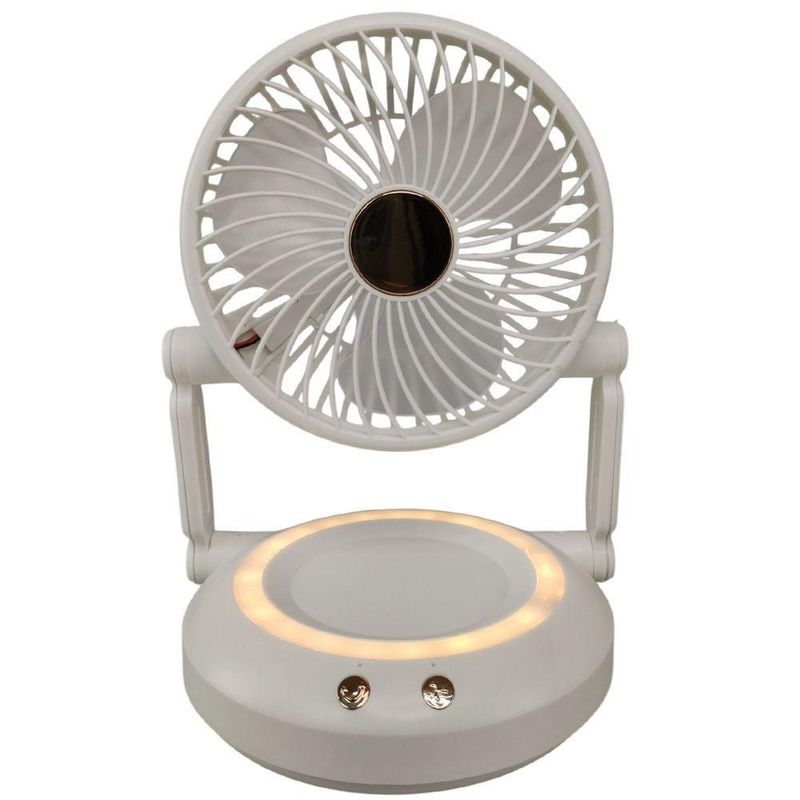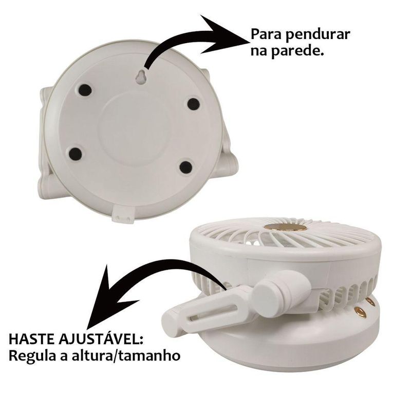 Ventilador Mesa Dobravel 3 Velocidades Portatil Luz Led Usb Verao Sol Calor Decoraçao Escrivaninha PenteadeiraPara não sentir calor neste verão, este ventilador vai aliviar o calor nos dias quentes de verão. Compacto e portátil ele é super silencioso.Ventilador de mesa dobrável e retrátil, fácil de armazenar e transportar, muito adequado para uso doméstico, escritório e lazer.O ventilador possui a grade frontal removivel, facilitando a limpeza das pás.Antes do primeiro uso, carregue totalmente o produto. Não é recomendado o uso do produto durante do carregamento, pois pode reduzir a sua vida util.Ventilador possui led em sua base, que ilumina o ambiente e facilita para fazer maquiagens, leituras e outros.Além disso o ventilador possui 3 níveis de intensidade, para facilitar1 Nível: Vento suave2 Nível: Um pouco mais forte3 Nível: Vento mais gelado.Características:Cor: BrancoMaterial: ABSPotencia: 3WVoltagem: 5V3 VelocidadesAlimentação: USBDuraçao da bateria aproximadamente de 6 a 8 horasTempo de carregamento aproximadamente 1 horaBaixo ruídoSilenciosoDobrávelPortatilDimensoes Aproximadas:Comprimento maximo: 25cm (Ajustável)Largura/Diametro da base: 18cmLargura/Diametro Do ventilador: 16cmPRODUTO FECHADOAltura: 9cmLargura/diametro: 18cmComprimento do cabo USB: 80cmConteudo da embalagem:1 Ventilador de Mesa1 Cabo USB3 Meses de Garantia Contra Defeito de Fabricaçao**561g MOD: BSL3813