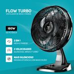 Ventilador De Mesa E Parede 220v 180w 50cm Wap Flow TurboDescubra o poder e a eficiência do Ventilador Wap Flow Turbo, um equipamento versátil e potente, ideal para refrescar qualquer ambiente com praticidade e conforto. Com 180W de potência, este ventilador oferece uma performance superior, garantindo um fluxo de ar constante e agradável. Graças à sua tecnologia SILENT FLOW, você desfruta de um ambiente fresco sem ruídos irritantes, perfeito para momentos de descanso ou concentração.A Wap, uma marca reconhecida pela qualidade e inovação, traz neste modelo um design aerodinâmico com 8 pás, proporcionando uma maior vazão de ar a longas distâncias. Este ventilador 2 em 1 pode ser utilizado tanto em cima da mesa quanto fixado na parede, adaptando-se às suas necessidades e ao espaço disponível. Com três velocidades ajustáveis, você pode escolher entre os modos Silencioso, Brisa ou Turbo, conforme a sua preferência.Além de potente, o Wap Flow Turbo é econômico, possuindo o selo PROCEL de eficiência energética, o que significa economia na conta de luz e um menor impacto ambiental. Sua estrutura robusta e leve, com apenas 3 kg, facilita o transporte e a instalação. A inclinação regulável e a oscilação de 90° garantem uma distribuição uniforme do ar, enquanto a grade removível facilita a limpeza e manutenção.ESPECIFICAÇÕES TÉCNICAS:- Modelo: FW009219- Potência: 180W- Tensão: 220V- Cor: Preto e Cinza- Tipo: 2 em 1 (Mesa e Parede)- Número de Velocidades: 3- Quantidade de Pás: 8- Diâmetro da Hélice: 40 cm- Diâmetro da Grade: 50 cm- Inclinação Regulável: Sim- Ângulo de Inclinação: 45°- Oscilante: Sim- Ângulo de Oscilação: 90° (-45° a +45°)- Motor: Indução- Frequência: 60 Hz- Corrente Elétrica: 0,6A (220V)- Comprimento do Cabo Elétrico: 1,45 metros- Material: Polímeros e Metais- Selo INMETRO: Sim- Selo PROCEL: SimITENS INCLUSOS:- Ventilador WAP FLOW TURBO 2 em 1- Base para Mesa ou Parede (Parafusos não incluídos)- Manual de InstruçõesGARANTIA:O produto conta com 1 ano de garantia, sendo 3 meses de garantia legal e mais 9 meses de garantia especial concedida pelo fabricante.Para garantir o melhor desempenho do seu ventilador, siga estas instruções básicas de uso:1. Escolha um local seguro e estável para a instalação.2. Para fixação na parede, utilize parafusos adequados (não incluídos).3. Conecte o ventilador a uma tomada de 220V.4. Utilize o botão seletor para escolher a velocidade desejada.Aproveite o conforto e a eficiência do Ventilador Wap Flow Turbo e transforme o ambiente da sua casa ou escritório. Adquira já o seu e sinta a diferença!