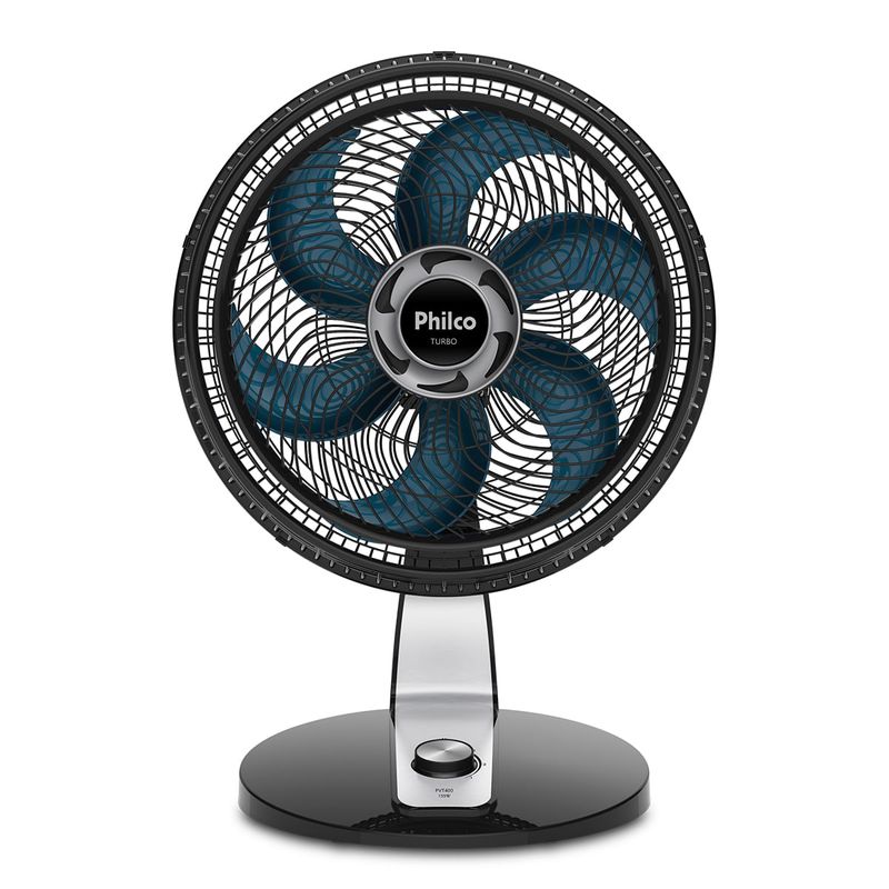 O Ventilador Philco 2 em 1 Turbo 160W PVT400AZ possui hélice com 6 pás e diâmetro de 40cm que garantem um excelente desempenho de ventilação. Conta ainda com 160W de potência e 3 velocidades, que variam entre mínima, média e máxima, além de sistema oscilante que permite ampla distribuição do ar no ambiente. Na hora da limpeza, pode ficar tranquilo, pois sua grade plástica é removível, facilitando o processo. Com inclinação vertical regulável você garante melhor direcionamento do fluxo de ar do seu Ventilador Philco, enquanto o fusível térmico proporciona maior segurança e durabilidade. Ventilador Philco 2 em 1 Turbo 160W PVT400AZ é silencioso e deixa o ambiente perfeito em todos os momentos! • 3 velocidades • Hélice com 6 pás • Grade que obedece às normas de segurança (contato com partes móveis) • Oscilação horizontal automática com novo sistema de acionamento (botão integrado ao corpo) • Novo sistema de articulação para ajuste da inclinação vertical (sem borboleta) • Pode ser fixado na parede • Porta-fio • Novo sistema de travamento entre grade frontal e traseira • Remoção da grade frontal, conforme normas de segurança • Motor com fusível térmico de segurança • Alça na grade traseira para transportar o aparelho • Painel decorativo na base.