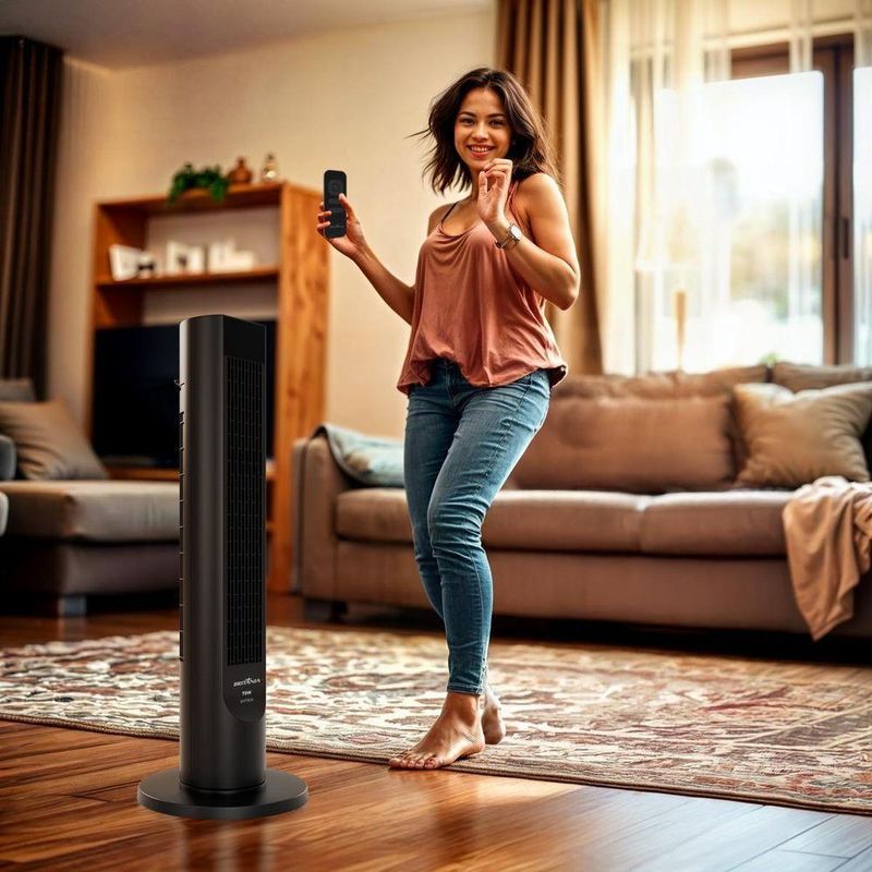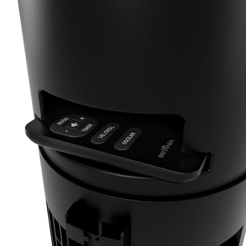 Ventilador Torre Britânia Painel Touch 75W BVT90A 220VO Ventilador Torre Britânia BVT90A une potência de 75W, design moderno e tecnologia inteligente para deixar seus ambientes sempre frescos e agradáveis. Seu painel touch com display digital facilita o uso, e o controle remoto traz ainda mais comodidade no dia a dia. Com 6 níveis de velocidade e 4 modos de funcionamento (Normal, Brisa, Dormir e Power Breeze) você ajusta a ventilação conforme a necessidade. A oscilação horizontal do Ventilador Torre Britânia garante melhor distribuição do ar por todo o espaço. O timer programável de até 12 horas permite configurar o tempo ideal de funcionamento, oferecendo praticidade e economia. Além disso, a estrutura em torre do Ventilador Britânia, ocupa pouco espaço e combina com diferentes ambientes. Perfeito para uso interno, o Ventilador Britânia BVT90A também conta com alça para transporte, porta-fio e grade removível para facilitar a limpeza. Eficiência, conforto e estilo em um só aparelho. Potência: 75WTipo: ventilador torre (uso interno)6 velocidades ajustáveis4 modos de ventilação: Normal, Brisa, Dormir, Power BreezePainel touch com display digitalControle remoto inclusoOscilação horizontal para ampla distribuição do arTimer programável: 1h, 2h, 4h, 8h e 12hAlça para transporte e porta-fio integradoGrade removível para facilitar a limpeza.Especificações Técnicas:Marca: BritâniaCor da Estrutura: PretoModelo: BVT90ACor das Pás: PretoTipo de alimentação: Energia ElétricaPotência (W): 75WTipo: TorreFunção repelente: NãoEstado: NovoAltura do produto: 91,8 cmLargura do produto:30 cmComprimento do produto:30 cmPeso do produto: 3,61 kgAltura com embalagem::96,3 cmLargura com embalagem: 21,5 cmComprimento com embalagem: 20,5 cmPeso com embalagem: 5,48 kgGarantia (Dias): 360Observação: Somente faturamos para o nosso consumidor final, ou seja, não faturamos pedidos para CNPJ por este portal de vendas;