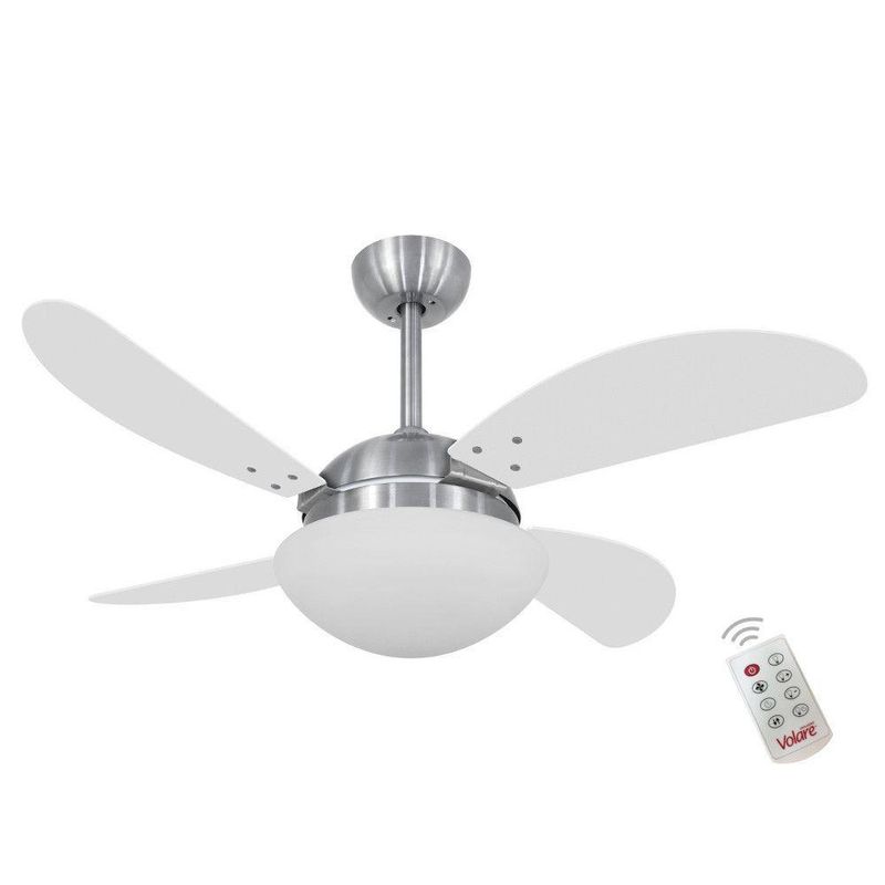 Ventilador Volare Fly Branco 220v E Controle RemotoVentilador De Teto Volare Escovado Vr42 Fly Branco 220V e Controle RemotoReferencia: 63058Os Ventiladores Volare são desenvolvidos com tecnologia de ponta e design exclusivo. Seu design moderno, facilita a integração com todos os estilos de decoração.As pás são produzidas em MDF laqueada com maior resistência e eficiência, seu motor com protetor térmico desliga automaticamente em caso de superaquecimento,garantindo o maior nível de segurança disponível no mercado.Além de uma excelente distribuição do ar por meio de motores robustos, velozes, silenciosos que possuem garantia de 2 anos.Tudo para que você tenha pleno conforto em seus ambientes.Este modelo é ideal para ambientes de 25 a 30 m², calculo considerando pé direito de até 3 metros.Características:Quantidade de Pás: 4Estrutura das Pás: MDFCor das Pás: BrancoCorpo: Aço EscovadoVoltagem: 220VAcionamento: Controle de Parede e Controle RemotoAspectos Técnicos:Nº de Velocidades: 3RPM do Motor: 404Área de Vazão: 2,00 m³/sSelo Procel (Economia de Energia): BSoquete de Lampada: 2xE27 (Lampada não inclusa)Ajuste de Altura: NãoSilencioso: SimFunção Exaustão: SimDimensões ventilador:Altura 48 cmDiâmetro 105 cmPeso: 5,630kgGarantia do motor: 24 mesesGarantais das Pás: 6 mesesConteúdo da Embalagem:1 Ventilador de Teto1 Chave de Parede1 Manual de Instruções1 Controle RemotoInformações Adicionais:- Verificar o tamanho e detalhes do produto antes da compra.- Fotos meramente ilustrativa.- A transportadora entregará o produto no andar térreo do endereço de entrega.- Avaliar a mercadoria no ato do recebimento e recusar em caso de divergência ou avarias.- Não nos responsabilizamos pela montagem e desmontagem do produto no ato da entrega e devolução, assim como os custos gerados nestas situações.- Sugerimos a contratação de um montador profissional para a montagem do produto.