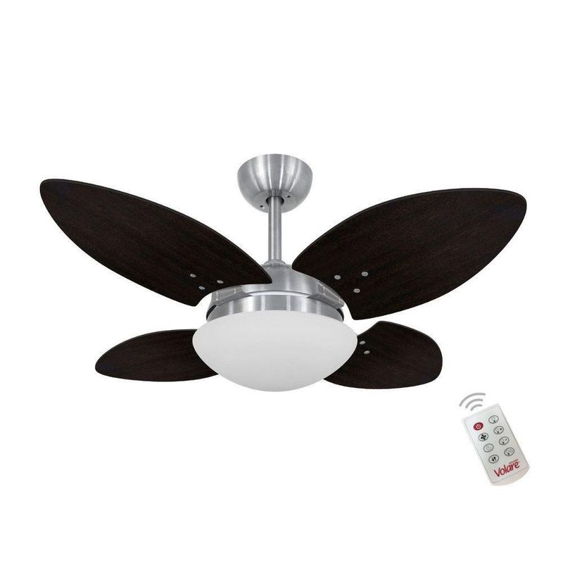 Ventilador Volare Mini Petalo Tabaco 220v E Controle RemotoVentilador De Teto Volare Escovado Vr28 Mini Petalo Tabaco 220V e Controle RemotoReferencia: 62648Os Ventiladores Volare são desenvolvidos com tecnologia de ponta e design exclusivo. Seu design moderno, facilita a integração com todos os estilos de decoração.As pás são produzidas em MDF laqueada com maior resistência e eficiência, seu motor com protetor térmico desliga automaticamente em caso de superaquecimento,garantindo o maior nível de segurança disponível no mercado.Além de uma excelente distribuição do ar por meio de motores robustos, velozes, silenciosos que possuem garantia de 2 anos.Tudo para que você tenha pleno conforto em seus ambientes.Este modelo é ideal para ambientes de 20 a 25 m², calculo considerando pé direito de até 3 metros.Características:Quantidade de Pás: 4Estrutura das Pás: MDFCor das Pás: TabacoCorpo: Aço EscovadoVoltagem: 220VAcionamento: Controle de Parede e Controle RemotoAspectos Técnicos:Nº de Velocidades: 3RPM do Motor: 404Área de Vazão: 1,96 m³/sSelo Procel (Economia de Energia): BSoquete de Lampada: 2xE27 (Lampada não inclusa)Ajuste de Altura: NãoSilencioso: SimFunção Exaustão: SimDimensões ventilador:Altura 43 cmDiâmetro 91 cmPeso: 5,800kgGarantia do motor: 24 mesesGarantais das Pás: 6 mesesConteúdo da Embalagem:1 Ventilador de Teto1 Chave de Parede1 Manual de Instruções1 Controle RemotoInformações Adicionais:- Verificar o tamanho e detalhes do produto antes da compra.- Fotos meramente ilustrativa.- A transportadora entregará o produto no andar térreo do endereço de entrega.- Avaliar a mercadoria no ato do recebimento e recusar em caso de divergência ou avarias.- Não nos responsabilizamos pela montagem e desmontagem do produto no ato da entrega e devolução, assim como os custos gerados nestas situações.- Sugerimos a contratação de um montador profissional para a montagem do produto.