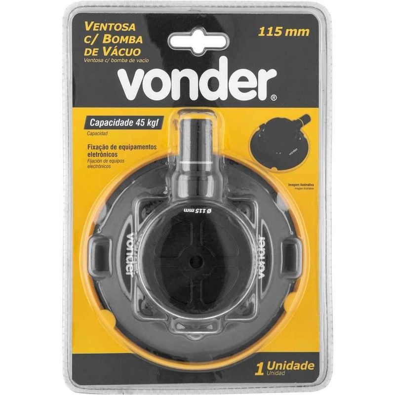 Ventosa 115 Mm, Com Bomba De Vácuo, Vonder OstenvonderVentosa 115 mm, com Bomba de Vácuo, Vonder OstenVonder -Conteúdo da embalagem: 1 Ventosa.Aplicação: Indicada para fixação de equipamentos eletrônicos, tais como câmeras, monitores, celulares, sensores, GPS, luminárias, em máquinas agrícolas na agricultura de precisão, além de motos e carros. Para a instalação, o equipamento a ser fixado deve ter as conexões e suportes compatíveis com a ventosa. Para retirar a ventosa, aperte as duas abas nas laterais para liberar o vácuo. Rosca do parafuso: M8 x 6 mm.Destaques: Acompanha tampa de plástico para proteger a borracha da ventosa.Referência: 3599115045Garantia - E (CDC): Garantia legal: 90 diasTipo da ventosa: BombaMaterial da ventosa: BorrachaMaterial do suporte e alça da ventosa: PlásticoCapacidade total de carga da ventosa: 45,0 kgfDiâmetro de cada ventosa: 115,0 mmMassa aproximada (peso): 0.36 kgDestaques Comercial: Acompanha tampa de plástico para proteger a borracha da ventosa.Aplicação Comercial: Fixação de eletrônicos (câmeras, GPS, sensores etc.) em máquinas agrícolas, motos e carros. Equipamento deve ter suporte compatível com a ventosa. Remoção pelas abas laterais. Rosca M8 x 6 mm.Características Gerais do Produto:Garantia: - 3 Meses