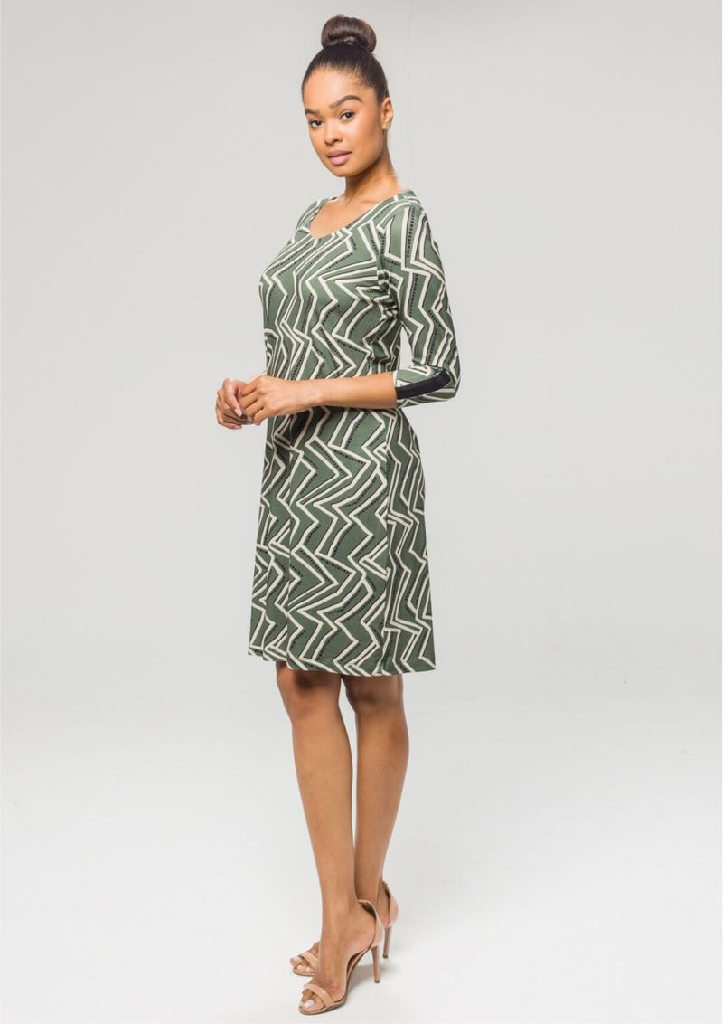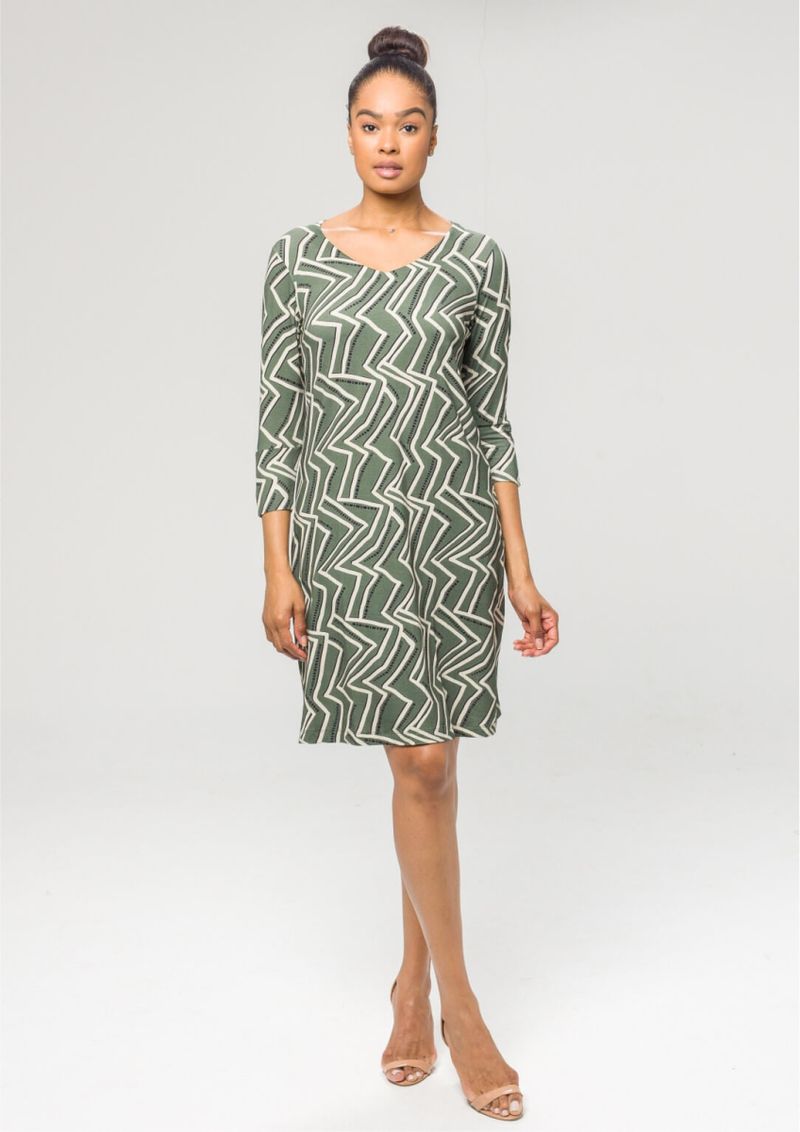 Vestido com decote em "V" e mangas 3/4. Malha estampada sobre o fundo Verde. Mangas com acabamento de recorte na mesma malha e ribana na cor Preto. Modelagem soltinha ao corpo. Elegante, confortável e lindo! Arrase!!! Composição da Malha: Confeccionado em 96% Viscose e 4% Elastano. Construído em "Viscolycra" com toque macio. Medidas Aproximadas: P: 99cm Comprimento x 92cm Busto x 88cm Cintura x 100cm Quadril. M: 101cm Comprimento x 98cm Busto x 94cm Cintura x 106cm Quadril. G: 103cm Comprimento x 104cm Busto x 100cm Cintura x 112cm Quadril. GG: 105cm Comprimento x 110cm Busto x 106cm Cintura x 118cm Quadril. XL: 107cm Comprimento x 116cm Busto x 112cm Cintura x 124cm Quadril. Todos os dados informados são aproximados, do peso às medidas. ATENÇÃO PARA AS MEDIDAS. MODELAGEM AMPLA.