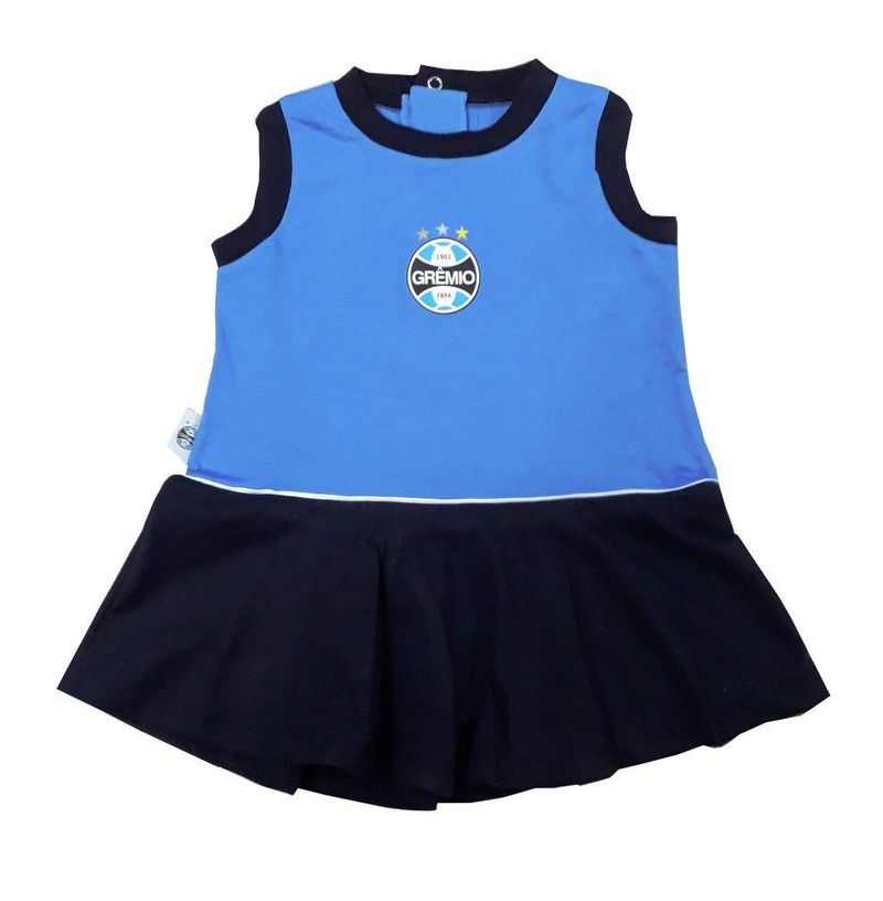 Vestido Bebê Grêmio Regata Oficial O vestido regata do Grêmio foi desenvolvido para os pequenos que são torcedores desde o berço. Com esse vestido a nova geração de campeões fica devidamente fardada com as cores do seu time de coração. Garanta o futuro das arquibancadas e vista os mini torcedores com o primeiro dos muitos mantos que ainda virão. Características - Vestido Regata. - Com o brasão do time. - Tecido leve e confortável. Especificações Técnicas Material: 100% algodão Idade Recomendada: Tamanho P - de 1 a 3 meses Tamanho M - de 3 a 6 meses Tamanho G - de 6 a 9 meses Conteúdo da Embalagem: 1 Vestido. Recomendações de uso: Seguir corretamente as instruções de lavagem da etiqueta.