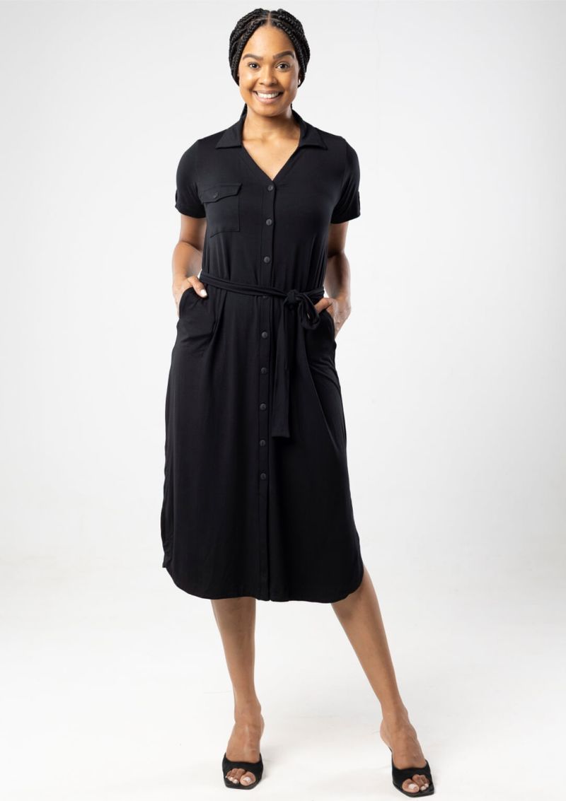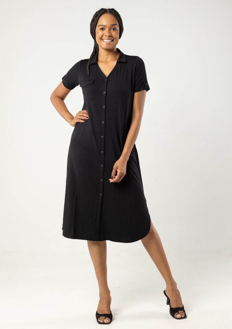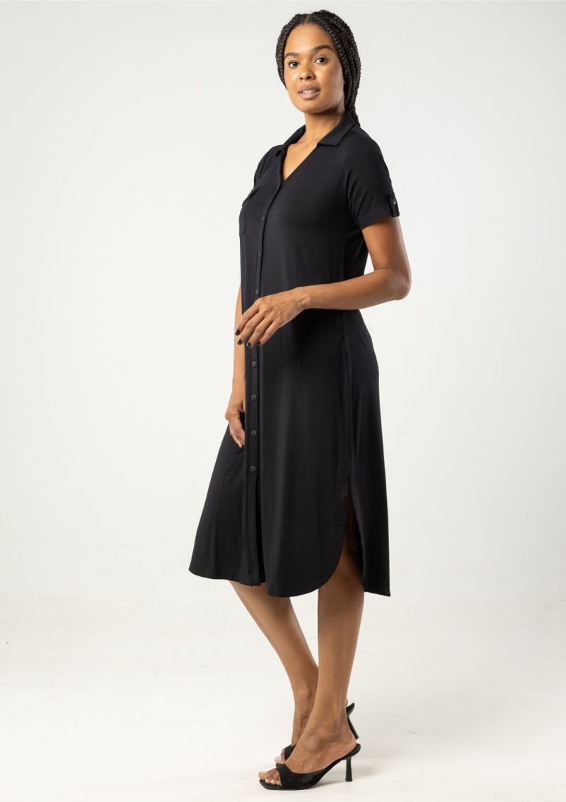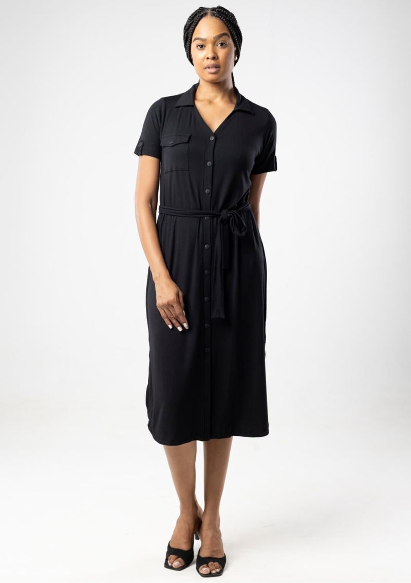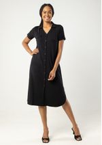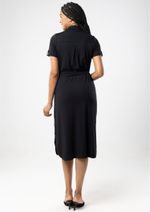 Vestido Chemise com gola e mangas curtas - cor básica Preto. Modelo com comprimento Midi, frente aberta e fechamento por botões ao longo do seu comprimento. Possui barra arredondada e fendas laterais, trazendo muito mais elegância ao modelo. Vem acompanhando um lindo cinto no mesmo tecido da peça fazendo com que a chemise fique bem acinturada. O modelo chemise reflete as mulheres que gostam de se vestir bem com delicadeza e muito conforto. Confira!!! Composição da malha: Confeccionado em 91% Viscose e 9% Elastano. Medidas Aproximadas: P: 118cm Comprimento x 100cm Busto x 100cm Cintura x 110cm Quadril. M: 120cm Comprimento x 106cm Busto x 106cm Cintura x 116cm Quadril. G: 122cm Comprimento x 112cm Busto x 112cm Cintura x 122cm Quadril. GG: 124cm Comprimento x 118cm Busto x 118cm Cintura x 128cm Quadril. XL: 126cm Comprimento x 124cm Busto x 124cm Cintura x 134cm Quadril. Todos os dados informados são aproximados, do peso às medidas. ATENÇÃO PARA AS MEDIDAS, POIS NOSSA MODELAGEM É AMPLA! *Modelo está usando o tamanho P*