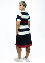 Vestido Manga Curta Pau a Pique Listrado Azul Marinho