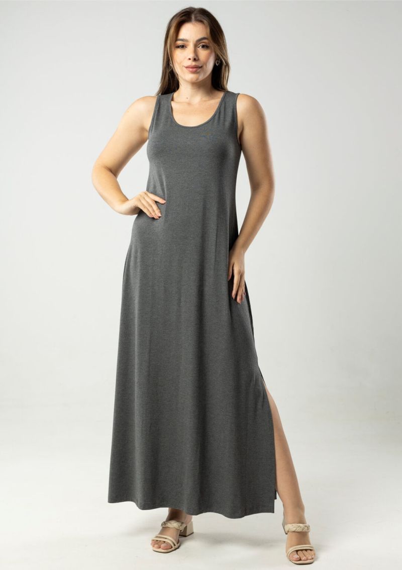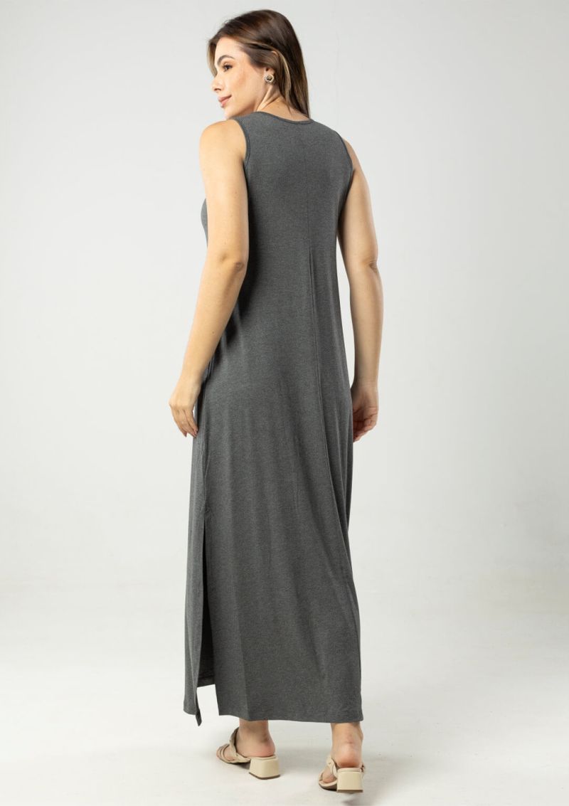 Vestido básico com decote redondo. Vestido longo, regata em malha lisa. Confortável e elegante. Permita-se! Composição da malha: Confeccionado em 96% Viscose e 4% Elastano. Construído em "viscolycra" com toque macio. Medidas Aproximadas: P: 135 x 84 x 90 x 110 cm (Altura, Busto, Cintura e Quadril). M: 137 x 90 x 96 x 116 cm (A, B, C, Q). G: 139 x 96 x 102 x 122 cm (A, B, C, Q). GG: 141 x 102 x 108 x 128 cm (A, B, C, Q). XL: 143 x 108 x 114 x 134 cm (A, B, C, Q). Todos os dados informados são aproximados, do peso às medidas.