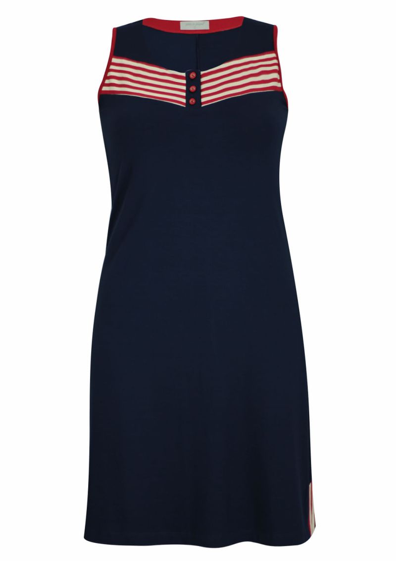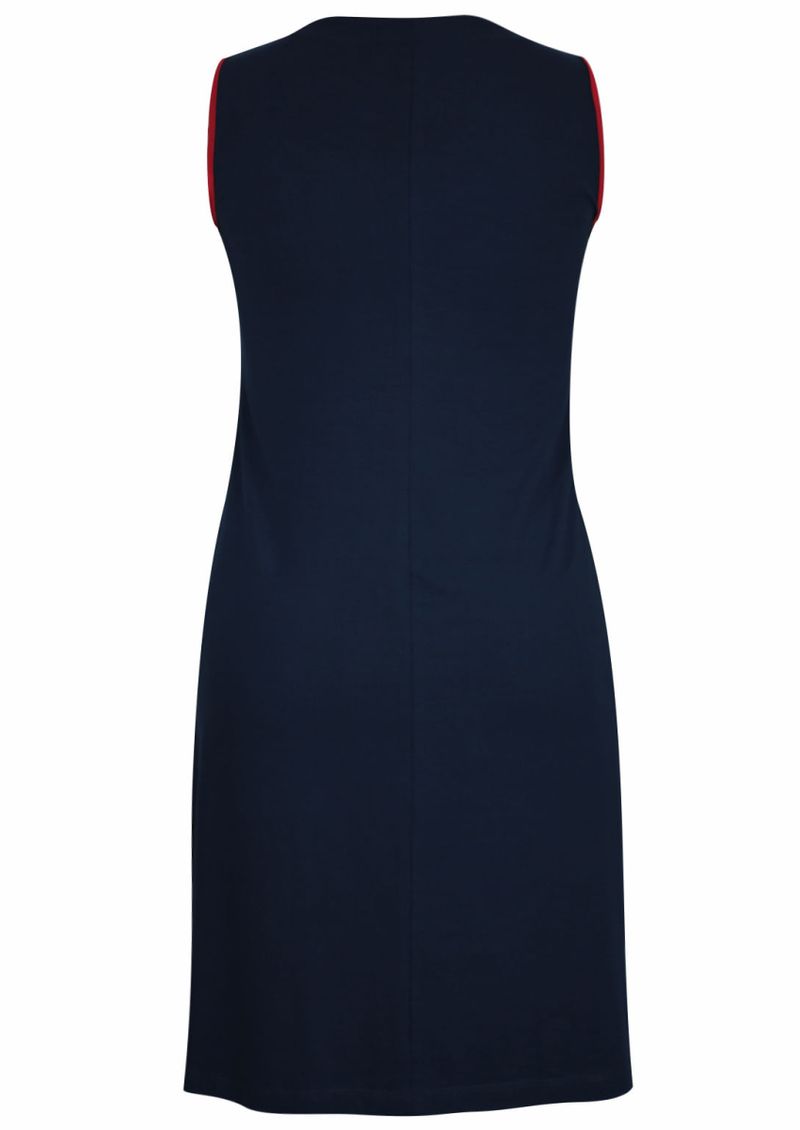 Vestido curto em malha Básica, Azul Marinho. Vestido com decote redondo, regata, com alças largas. Possui recortes listrados em vermelho, no decote e lateral e detalhe de botões frontais. Modelagem soltinha ao corpo. Confortável e elegante. Permita-se! Composição da malha: Confeccionado em 92% Viscose e 8% Elastano. Construído em "viscolycra" com toque macio. Medidas Aproximadas: P: 97 x 92 x 92 x 102 cm (Altura, Busto, Cintura e Quadril). M: 99 x 98 x 98 x 108 cm (Altura, Busto, Cintura e Quadril). G: 101 x 104 x 104 x 114 cm (Altura, Busto, Cintura e Quadril). GG: 103 x 110 x 110 x 120 cm (Altura, Busto, Cintura e Quadril). XL: 105 x 116 x 116 x 126 cm (Altura, Busto, Cintura e Quadril). Todos os dados informados são aproximados, do peso às medidas. ATENÇÃO PARA AS MEDIDAS, POIS NOSSA MODELAGEM É AMPLA!