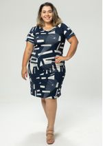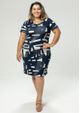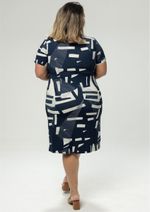 Vestido com decote em "V" e mangas curtas. Estampado na cor Off White sobre o fundo Azul Marinho. Mangas possui recorte, martingale com botão e punho que contem pequena abertura. Modelagem soltinha ao corpo. Confortável, elegante e lindo. Composição da malha: Confeccionado em Viscocrepe 96% Viscose e 4% Elastano. Medidas Aproximadas: P: 94cm Comprimento x 92cm Busto x 90cm Cintura x 106cm Quadril. M: 96cm Comprimento x 98cm Busto x 96cm Cintura x 112cm Quadril. G: 98cm Comprimento x 104cm Busto x 102cm Cintura x 118cm Quadril. GG: 100cm Comprimento x 110cm Busto x 104cm Cintura x 124cm Quadril. XL: 102cm Comprimento x 116cm Busto x 106cm Cintura x 130cm Quadril. Todos os dados informados são aproximados, do peso às medidas. ATENÇÃO PARA AS MEDIDAS, POIS NOSSA MODELAGEM É AMPLA!