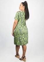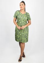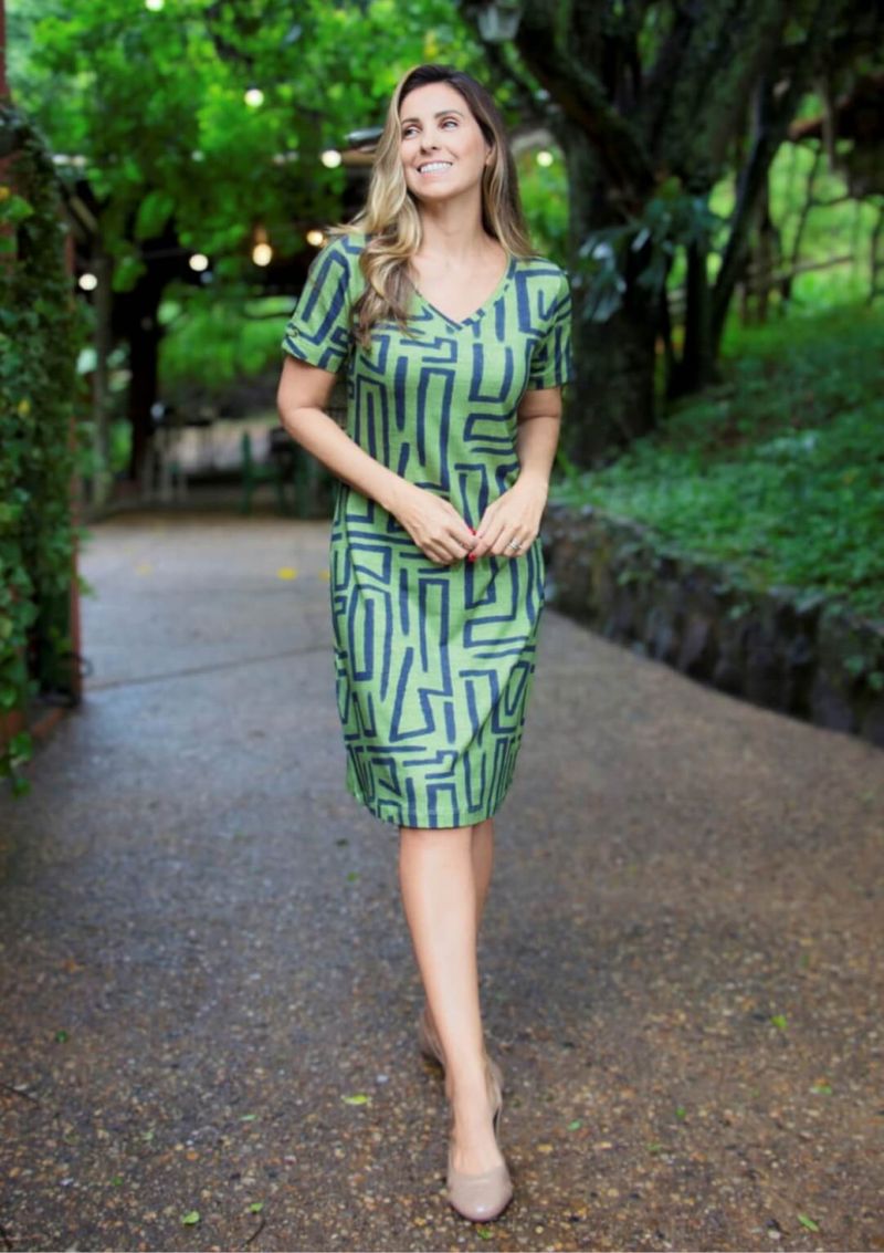 Vestido com manga curta e decote em "V". Modelo estampado em Azul Marinho sobre o fundo Verde. As mangas possuem abertura com cordão e ilhós. Confeccionado em Viscolycra, que equilibra qualidade, conforto e sofisticação. O vestido estampado é uma ótima opção para qualquer ocasião desde situações casuais até as mais elegantes. Confira!!! Composição da malha: Confeccionado em 94% Viscose e 6% Elastano. Medidas Aproximadas: P: 98cm Comprimento x 90cm Busto x 84cm Cintura x 96cm Quadril. m: 100cm Comprimento x 96cm Busto x 90cm Cintura x 102cm Quadril. G: 102cm Comprimento x 102cm Busto x 96cm Cintura x 108cm Quadril. GG: 104cm Comprimento x 108cm Busto x 102cm Cintura x 114cm Quadril. XL: 106cm Comprimento x 114cm Busto x 108cm Cintura x 120cm Quadril. Todos os dados informados são aproximados, do peso às medidas. ATENÇÃO PARA AS MEDIDAS, POIS NOSSA MODELAGEM É AMPLA!