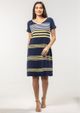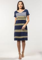 Vestido com decote em "V" e Mangas Curtas. Malha listrada nas cores Azul Marinho, Amarelo e Branco. Confortável e elegante, compõem looks despojados. Arrase! Composição da Malha: Confeccionado em 92% Viscose e 8% Elastano. Construído em "Viscolycra" com toque macio. Medidas Aproximadas: P: 96 x 90 x 88 x 100 cm (Comprimento, Busto, Cintura e Quadril). M: 98 x 96 x 94 x 106 cm (Comprimento, Busto, Cintura e Quadril). G: 100 x 102 x 100 x 112 cm (Comprimento, Busto, Cintura e Quadril). GG: 102 x 108 x 106 x 118 cm (Comprimento, Busto, Cintura e Quadril). XL: 104 x 114 x 112 x 124 cm (Comprimento, Busto, Cintura e Quadril). Todos os dados informados são aproximados, do peso às medidas. ATENÇÃO PARA AS MEDIDAS, POIS NOSSA MODELAGEM É AMPLA!