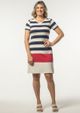 Vestido com decote em "V" e Mangas Curtas com recorte. Vestido em malha listrada na Marinho, Vermelho e Cru. Confortável e elegante, compõem looks despojados. Arrase! Composição da Malha: Confeccionado em 95% Viscose e 5% Elastano. Construído em "Viscocrepe" com toque macio. Medidas Aproximadas: P: 97 x 92 x 88 x 104 cm (Comprimento, Busto, Cintura e Quadril). M: 99 x 98 x 94 x 110 cm (Comprimento, Busto, Cintura e Quadril). G: 101 x 104 x 100 x 116 cm (Comprimento, Busto, Cintura e Quadril). GG: 103 x 110 x 106 x 122 cm (Comprimento, Busto, Cintura e Quadril). XL: 105 x 116 x 112 x 128 cm (Comprimento, Busto, Cintura e Quadril). Todos os dados informados são aproximados, do peso às medidas. ATENÇÃO PARA AS MEDIDAS, POIS NOSSA MODELAGEM É AMPLA!