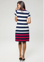 Vestido Pau a Pique Listrado Azul Marinho e Vermelho