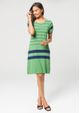Vestido com decote redondo e mangas curtas. Mangas com acabamento em viés Azul Marinho. Listrado em tons de Verde e Azul Marinho. Esse modelo esbanja elegância e estilo. Permita-se! Composição da Malha: Confeccionado em 95% Viscose , 5% Elastano. Toque macio. Medidas Aproximadas: P: 97cm Comprimento x 90cm Busto x 86cm Cintura x 102cm Quadril. M: 99cm Comprimento x 96cm Busto x 92cm Cintura x 108cm Quadril. G: 101cm Comprimento x 102cm Busto x 98cm Cintura x 114cm Quadril. GG: 103cm Comprimento x 108cm Busto x 104cm Cintura x 120cm Quadril. XL: 105cm Comprimento x 114cm Busto x 110cm Cintura x 126cm Quadril. Todos os dados informados são aproximados, do peso às medidas. ATENÇÃO PARA AS MEDIDAS. MODELAGEM AMPLA.
