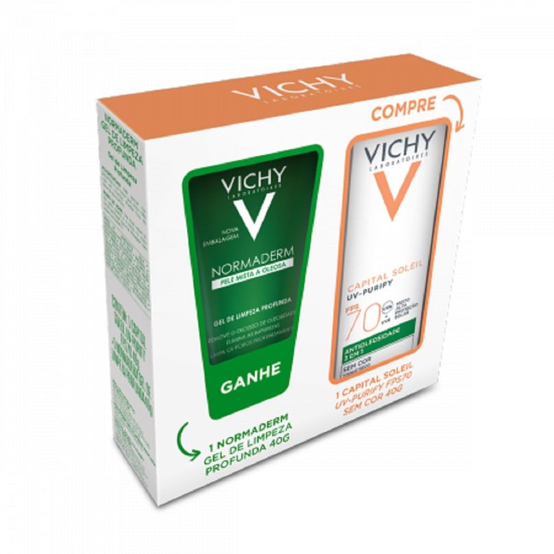 O Protetor Solar Facial Capital Uv Purify Sem Cor Fps 70 40g + Gel Limpeza Normaderm 40g - Kit são produtos de ótima qualidade e eficácia, que atuam no combate contra a pele oleosa e com a presença de acne, além de proporcionar uma limpeza profunda limpando os poros e eliminando impurezas. Ademais, o Protetor Solar Facial Purify garante uma alta proteção contra os raios solares UVA e UVB, evitando queimaduras intensas e sensação de ardência na pele. Não fique de fora e garanta já este kit imperdível!