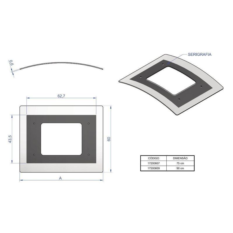 Vidro Curvo Para Coifa De Ilha 90CmVidro Curvo para Coifa de Ilha 90cmCaracteristicas Sua aplicacao original e destinada as coifas de ilha vidro curvo atuais das marcas Fogatti, Nardelli e Terim. Nao nos responsabilizamos pela compatibilidade ou nao em produtos de outras marcas. O valor anunciado e para 1 unidade. Valor e estimativa de entrega poderao ser conferidos pelo proprio cliente em uma rapida simulacao de compra do item. Dimensoes especificadas na segunda imagem do anuncio. Garantia de 3 meses para defeitos de fabricacao Imagens meramente ilustrativas Instalacao por conta do cliente