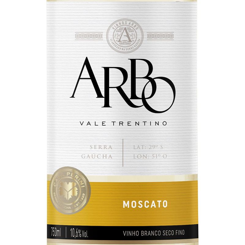Vinho Arbo Moscato Branco Seco Casa Perini 750ml Os vinhos Arbo da Casa Perini traduzem uma proposta de vinhos jovens e elegantes por excelência. De aromas e sabores sutis, proporcionam belas experiências na degustação da linha que é composta por variedades que vão das clássicas às menos usuais, como assemblage e brancas. Apresenta coloração esverdeada brilhante, aroma intenso e delicado, que fazem deste o vinho branco mais típico da Serra Gaúcha. Elaborado com a variedade Moscato, é um vinho refrescante e aromático. Harmonização: Saladas que levam frutas, carnes brancas ou molho agridoce. Frutas e doces. Coloração: esverdeada brilhante. Aroma: característico delicado que fazem deste vinho o mais tradicional da serra gaúcha. Sabor: Fresco e agradável. Temperatura Ideal: 4 a 6º C. Uvas: Moscato Tipo: Branco Seco Teor alcoólico: 10,6% Volume: 750ml Vinícola: Perini. Região: Serra Gaúcha/Brasil. Se for dirigir não beba. Conteúdo para maiores de 18 anos. Todas as informações divulgadas são de responsabilidade do fabricante/fornecedor. Imagens meramente ilustrativas.
