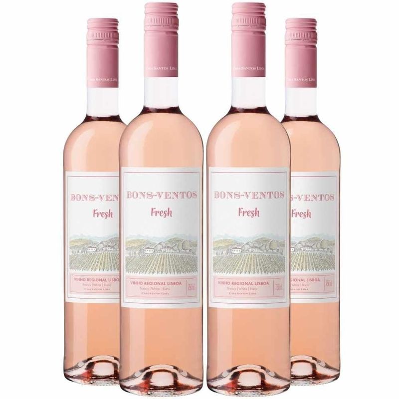 Vinho Rose Bons Ventos Fresh 750ml Kit 4 GarrafasKit 4 garrafas 750mlRegião: Vinho regional de Lisboa (Portugal)Produtor: Casa Santos LimaTipo: Rosé Meio SecoUva: Castelão e Cabernet SauvignonAmadurecimento: Fermentação em tanques de aço InoxÁlcool: 9,5%De uma belíssima coloração rosada, revela aromas de frutas vermelhas, como morango e amora, além de notas apimentadas. Um Vinho Rosé intenso e fresco. Em boca, é equilibrado, com um final longo.História:A Casa Santos Lima foi constituída para continuar a história da família portuguesa Santos Lima. Conta com um portfólio muito alargado de vinho, produzindo todos os anos e em 5 regiões diferentes vinhos tintos, brancos, rosés, espumantes, frisantes, leves e colheitas tardias. A Casa Santos Lima é uma empresa familiar que se dedica à produção, engarrafamento e comercialização de vinhos portugueses. Trabalha diretamente ou indiretamente nas regiões de Lisboa, Algarve, Alentejo, Douro e Vinhos Verdes.