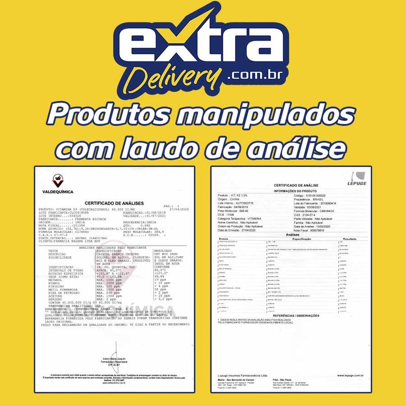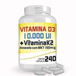 Vitamina D3, colecalciferol é uma vitamina solúvel em gordura. É conhecida como a vitamina dos raios de sol porque é formada no corpo pela ação dos raios ultravioletas do sol na pele. A vitamina D é convertida nos rins no hormônio calcitrol, que é realmente a forma mais ativa de vitamina D. Os efeitos deste hormônio são direcionados nos intestinos e ossos. Os requisitos de vitamina D aumentam com a idade, enquanto a capacidade da pele de converter a luz do sol em vitamina D reduz. Além da capacidade dos rins de converter o calcidiol à sua forma ativa também reduzir com a idade, estimulando a necessidade de um maior suplemento de vitamina D em pessoas mais velhas. A principal função biológica da vitamina D é manter os níveis sanguíneos normais de cálcio e fósforo. A vitamina D ajuda na absorção de cálcio, ajudando a formar e manter ossos fortes. Promove a mineralização óssea em conjunto com diversas outras vitaminas, minerais e hormônios. Sem a vitamina D, os ossos podem ficar mais finos, frágeis, moles ou desformados. A vitamina D previne raquitismo em crianças e osteomalácia em adultos, que são doenças do esqueleto que resultam em defeitos que enfraquecem os ossos. Câncer: Foi constatado que o hormônio da vitamina D, calcitriol, induz a morte das células cancerígenas in vitro e in vivo. Apesar da atividade anticancerígena da vitamina D não ser completamente compreendida, pensa-se que estes efeitos são mediados por meio de receptores da vitamina D expressas nas células cancerígenas, e podem estar relacionados às suas capacidades imunomoduladoras. A atividade anticancerígena da vitamina D observada no laboratório fez com que algumas pessoas propusessem que a complementação da vitamina D pode ser benéfica no tratamento ou prevenção de alguns tipos de câncer. Benefícios: - Pode ser benéfico no tratamento ou prevenção de alguns tipos de câncer; - Promove a mineralização óssea; - Pode reduzir pressão arterial alta;- Ajuda a desenvolver ossos fortes. Vitamina K2 MK-7 é um produto totalmente natural e altamente biodisponível, essencial para uma adequada mineralização óssea e regulação dos níveis de cálcio no interior das artérias. De todos os tipos de vitamina K, a Vitamina K2 MK-7, extraída a partir do Natto, tradicional prato japonês, derivado da fermentação da soja, demostrou ser a mais eficaz, por ser mais biodisponível e ter uma meia vida mais longa na corrente sanguínea. A suplementação de vitamina K tem demonstrado ser muito importante na manutenção da saúde dos ossos e do sistema cardiovascular. Indicações e aplicações: - Saúde óssea· - Fortalecimentos dos ossos· - Preventivo de fraturas ósseas· - Coadjuvante e preventivo para o tratamento de osteoporose· - Benefícios vasculares· - Regulação dos níveis de cálcio nos ossos e nas artérias·